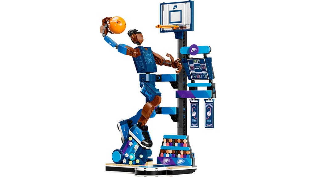 LEGO Nike Slam Dunk komplet vsebuje skupaj 809 kosov, in prikazuje resnično spektakularen prizor zabijanja. Set vključuje košarkarsko tablo, semafor, zmagovalno zastavo ter gledalce ob igrišču. Figura košarkarske zvezde ima gibljive roke, tako da lahko otroci zlahka odigrajo svoje sanjsko zabijanje. Poleg tega lahko svojega MVP-ja prilagodijo z različnimi pričeskami ter edinstvenimi Nike dresi in čevlji. Ta komplet ne le razvija ustvarjalnost, ampak tudi krepi strast do športa, hkrati pa zagotavlja ure in ure zabave za vse starosti.Družine lahko gradijo in predstavljajo nove LEGO komplete s temo Nike. Ti kompleti ne ponujajo le kreativne zabave, temveč ustvarjajo tudi skupno doživetje za družinske člane. Med gradnjo lahko otroci in odrasli sodelujejo, s čimer razvijajo svojo ročno spretnost, ustvarjalnost in timsko delo. Elementi s temo Nike prinašajo poseben slog in edinstvenost v LEGO zbirke, zato so končne stvaritve lahko privlačni okrasi vsakega doma.