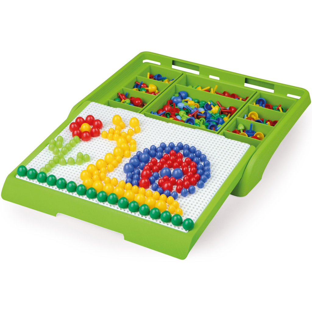 LENA komplet mozaik pikic v kovčku je odlična izbira, če tvoj otrok rad ustvarja in sestavlja pisane slike. Zaradi praktične prenosne zasnove kovčka ga lahko zlahka vzamete s seboj na potovanje ali na obisk. Z različnimi velikostmi (10–15 mm) pikic, ki so v kompletu, lahko tvoj otrok na plošči sestavlja vesele vzorce, figurice in oblike, pri čemer razvija fino motoriko, koncentracijo in ustvarjalnost. Predalnik z razdelki pomaga ohraniti kose urejene, zato je pospravljanje po igri enostavno. Idealen izbor že od 3. leta starosti, saj je enostaven za uporabo in dolgo časa pritegne pozornost malčkov.