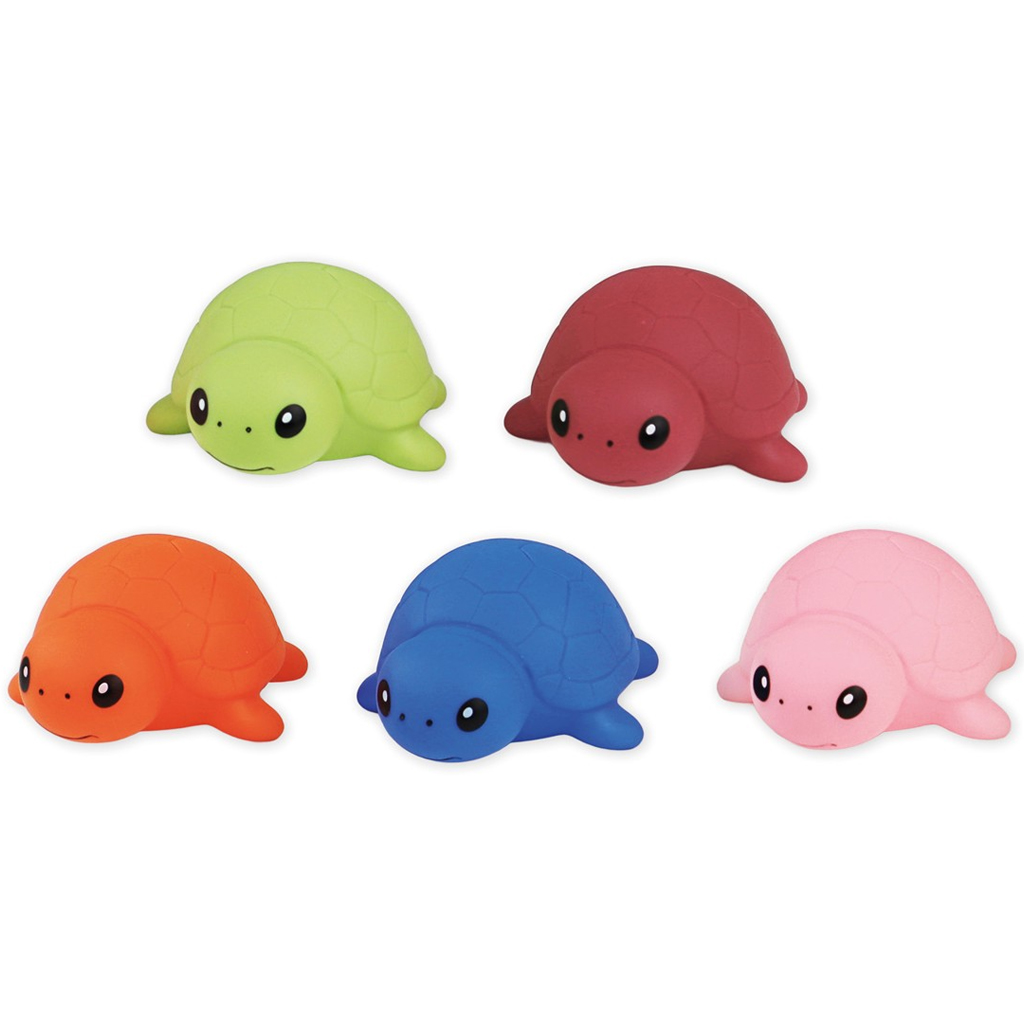 Želvice se ponašajo z živimi barvami; njihov ljubek obrazek in zaobljene oblike takoj pritegnejo pozornost otrok. Na gladini vode nežno plavajo, zato jih je mogoče postaviti v dirko, kar igro naredi še bolj razburljivo. Mehka, lahko prijemljiva oblika pomaga majhnim rokicam in obenem razvija finomotoriko, koordinacijo oči in rok ter domišljijo.
