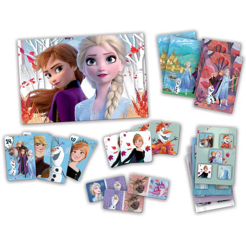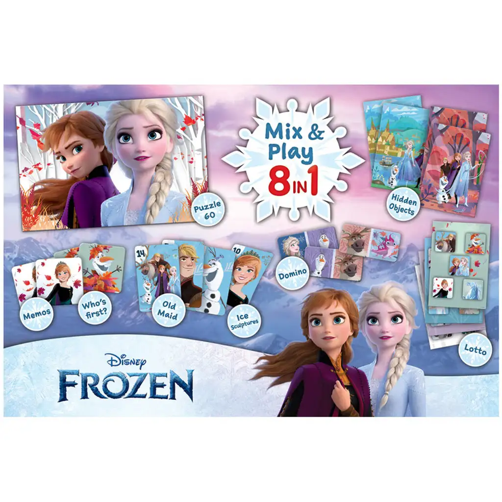 Trefl - Frozen 8 v 1 zbirka družabnih iger je popolna izbira za vse oboževalce Anne, Else in Olafa, ki se radi potopijo v čarobni svet Arendelle! Set vsebuje 8 različnih iger, vsaka z liki iz Frozen, tako da vsaka igra prinaša nove dogodivščine in izzive. Otroci lahko izbirajo med različnimi igrami, kot so spomin, domine, sestavljanke, iskanje ugank, ter klasike kot so Človek ne jezi se in Lotto.