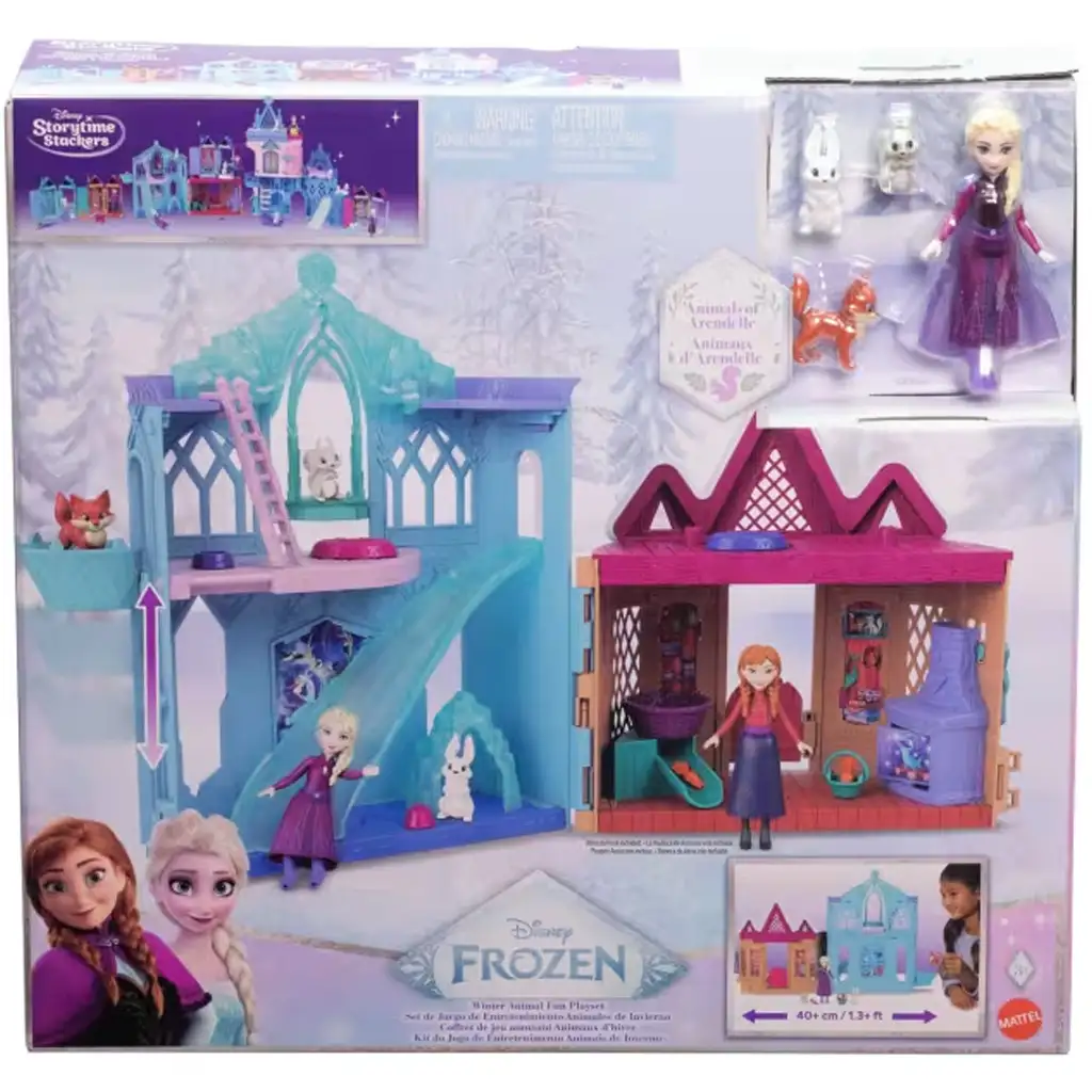 Živali, ki se spuščajo po toboganu, interaktivno dvigalo, udobna mesta za počitek in elementi za hranjenje živali vse prispevajo k domišljijskem, skrbnemu igri vlog. Set je združljiv z drugimi Disneyjevimi Storytime Stackers seti, zato je Ledeni kraljestvo univerzum mogoče še razširiti in nadgraditi.