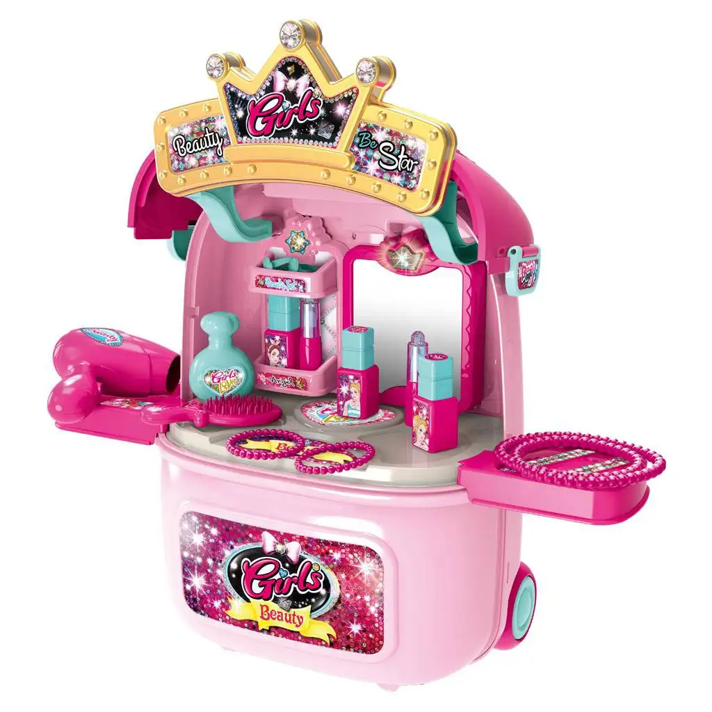 To je roza lepotni set, sanje vsake male modne navdušenke! Čudovit, roza zložljiv kovček vsebuje lepotni set izdelan iz kakovostne plastike, ki zagotavlja varno in dolgotrajno uporabo. Ko otroci odprejo kovček, najdejo popolnoma opremljen lepotni salon, kjer so na voljo vsa potrebna orodja za različne ličenje in oblikovanje las. Ne glede na to, ali gre za lakiranje nohtov, nego obraza ali preizkušanje nove frizure, je z tem setom vse mogoče.