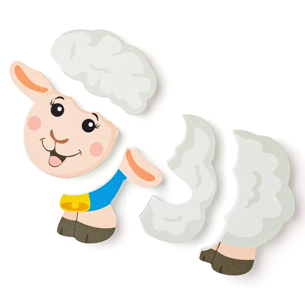 Prijazen nasmeh ovčke in barvito ozadje naredita igračo še posebej privlačno za otroke. Sestavljanka iz petih posameznih kosov pomaga malčkom spoznati osnove oblik in sestavljanja, hkrati pa razvija koordinacijo oči-roke in sposobnost koncentracije.