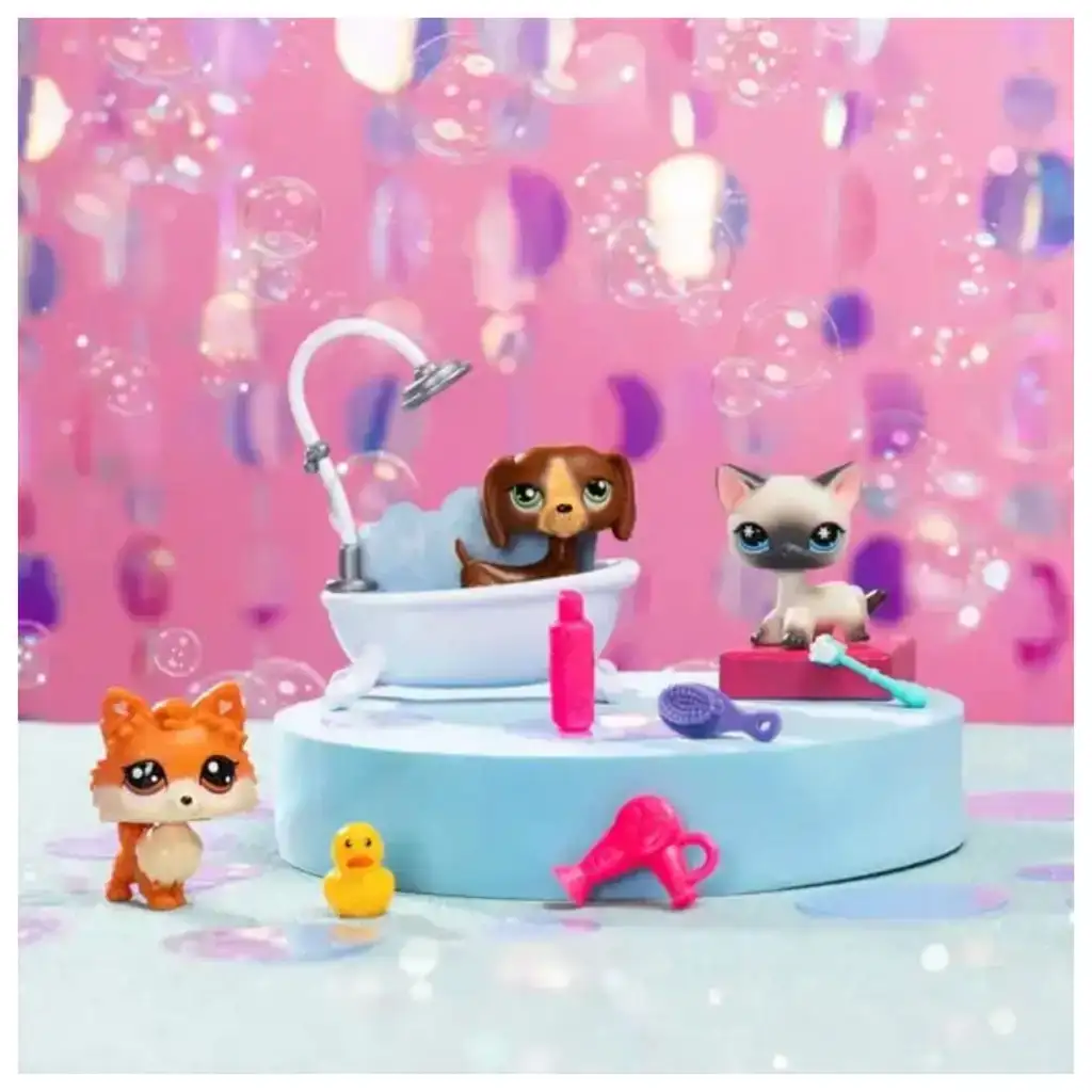 Pripravi se na wellness pustolovščino za male živali z Littlest Pet Shop: Spa 3-delni kompletom figuric, kjer sta kopanje in razvajanje zagotovljeno zabavna izkušnja! Ta čudovit komplet vsebuje tri prikupne male živali – mucko, kužka in lisičko –, ki obožujejo peneče kopeli in polepšavanje. Otroci lahko ustvarijo svoj lasten mali živalski salon, kjer kopanje, česanje in sušenje las postanejo vsakodnevne dejavnosti.