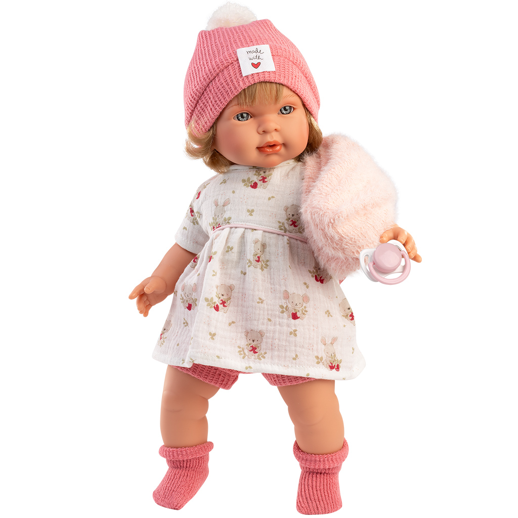 Llorens: Carla, 42 cm jočeča lutka z dudo v kapici s srčki ocena: