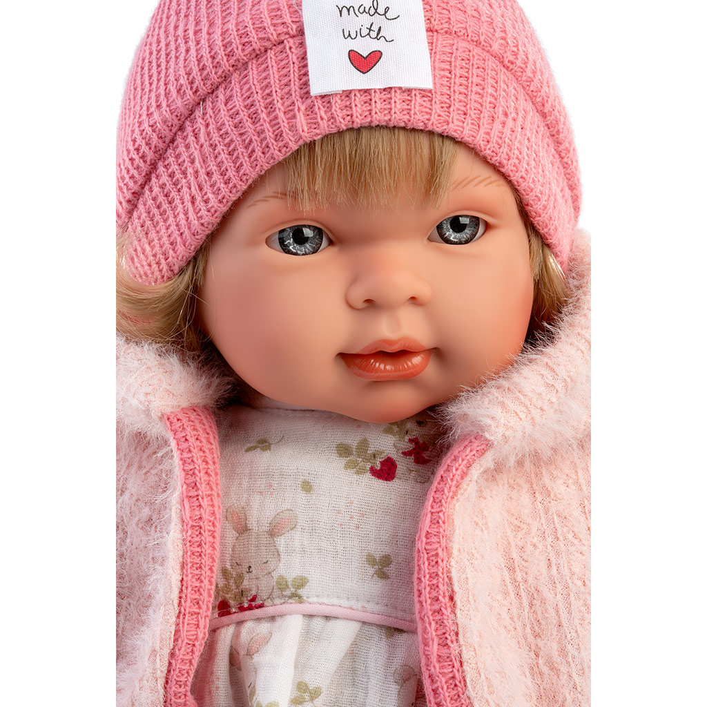 Llorens: Carla, 42 cm jočeča lutka z dudo v kapici s srčki