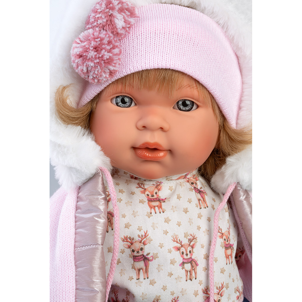 Llorens: Carla, 42 cm visoka jočeča lutka v modrem krilu, je resnično očarljiva in zelo realistično igrača, ki v otrokovo vsakdanje življenje prinaša veselje. Natančno oblikovan obraz lutke, bleščeče oči in mehak otip si bodo takoj prisvojili srca malčkov. Prisrčen potiskan zgornji del, modno modro krilo in topli rožnati dodatki ustvarjajo harmoničen, stilski videz. Funkcija joka in duda naredijo igračo še bolj verodostojno, zato se bo tvoj otrok lahko zanjo skrbel, jo pomiril in božal svojega novega ljubljenčka.