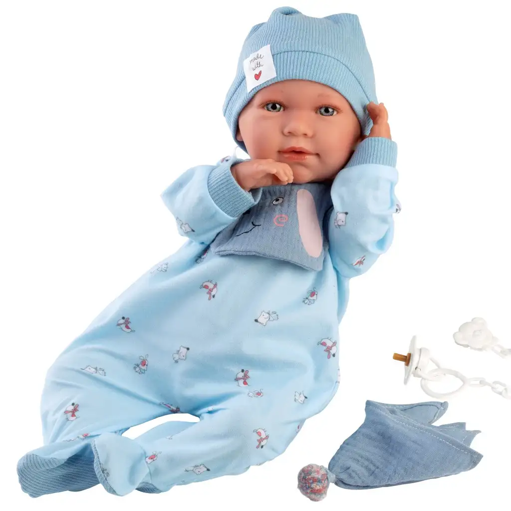 Llorens: Dojenček Llorón, 42 cm, z zvokom in predpasnikom s psičkom