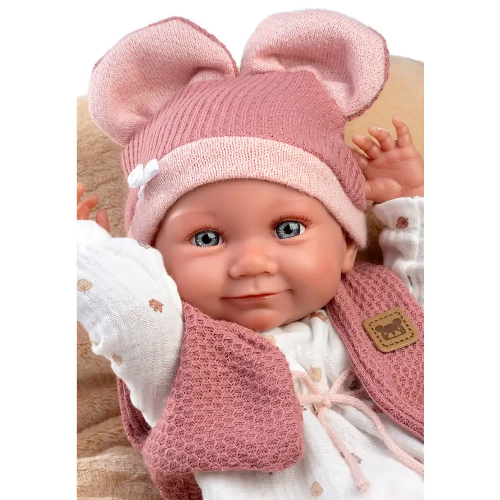 Poleg punčke je priložena mehka, kremna blazina, ki je popolna za igro, uspavanje ali celo za počitek po igri z dojenčkom. Roke, noge in obraz punčke so podrobno oblikovani iz naravnega videza plastike, njen realističen izraz pa jo naredi še bolj ljubečo.