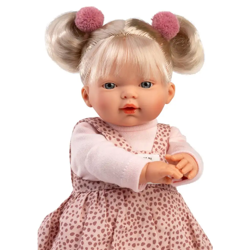 Llorens punčke so ročno izdelane v Španiji iz vrhunskih materialov, z veliko pozornosti in ljubezni. Pikčasta obleka Roberta punčke je skrbno izdelana v vseh podrobnostih, zato je resnično poseben kos – ne le igrača, ampak tudi prijatelj za vse življenje.