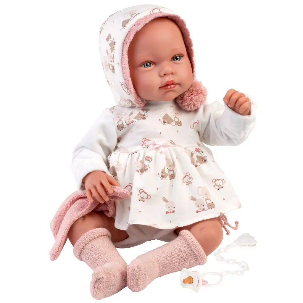 Llorens: Tala Llorana 44 cm novorojenček z zvokom v kapucarju.
