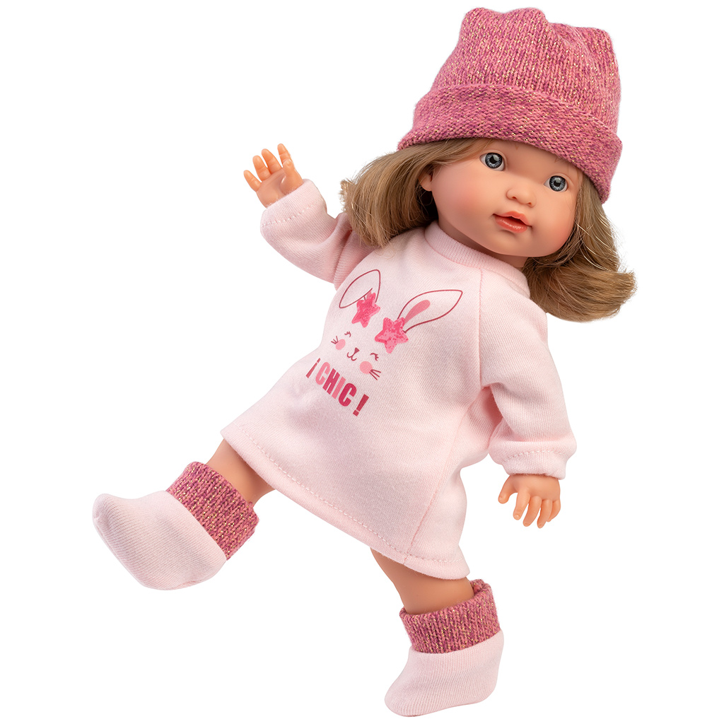 Llorens: Valeria, 28 cm lutka v majici z motivom zajčka.Llorens: Valeria, 28 cm lutka v majici z motivom zajčka.