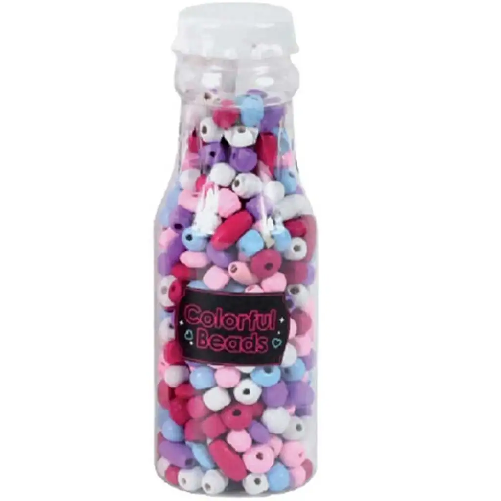 Stilska, plastična škatla v obliki "mlečne steklenice" je polna živahnih, raznolikih perlic v različnih oblikah, med katerimi najdemo odtenke rožnate, vijolične, rdeče, modre in bele – popolna harmonija pastelnih in intenzivnih barv.