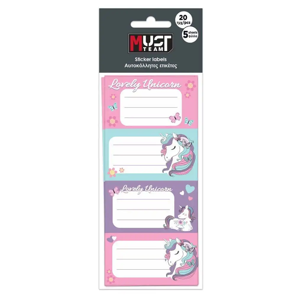 Luna: Etikete za zvezke z motivom Must Team Unikornis, paket 20 kosov