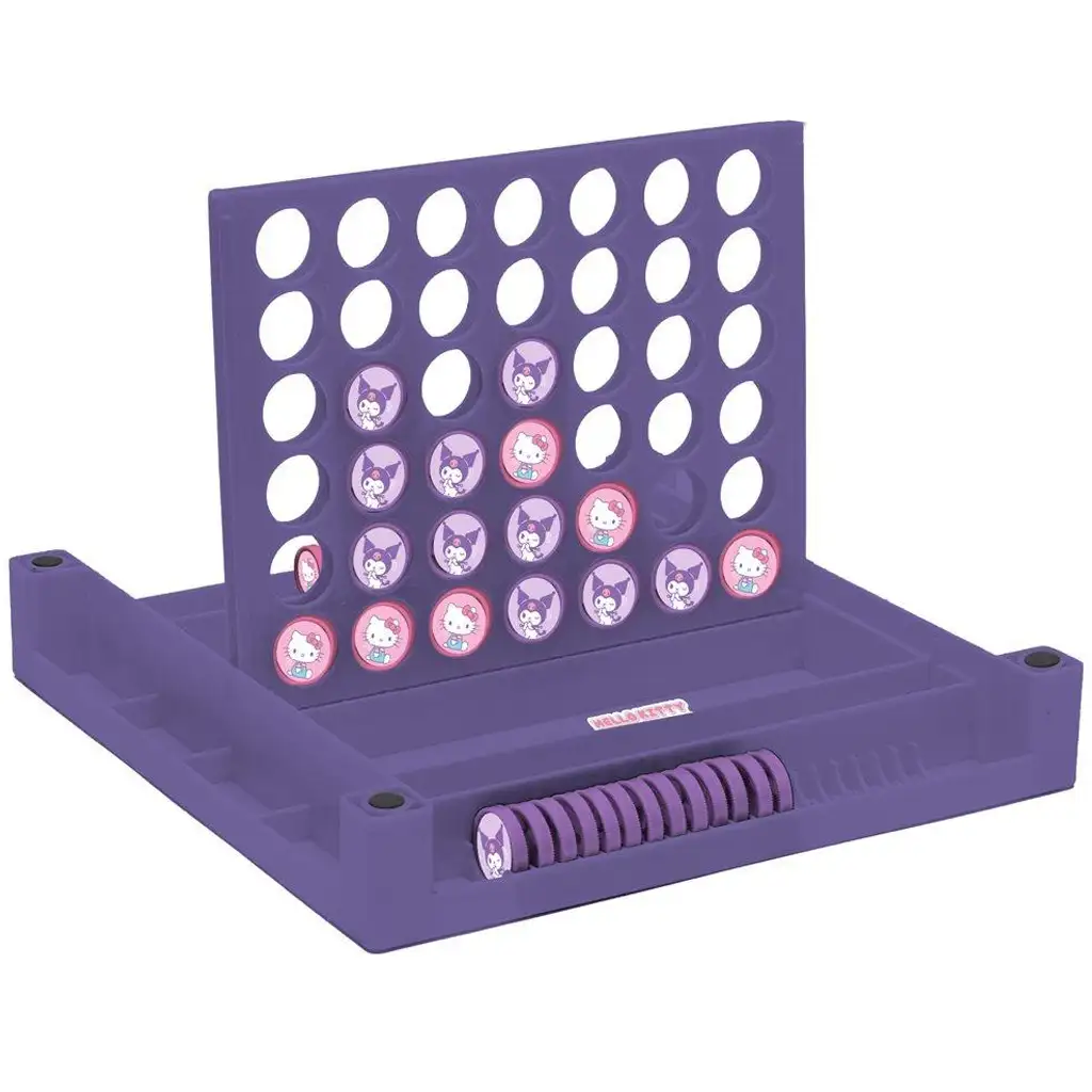 Na eni strani igralne plošče vas pričaka dobro poznana igra »Kače in lestve«, kjer otroci napredujejo z metanjem kocke. Lestve jim pomagajo napredovati, »kače« (v obliki veselih trakov) jih potegnejo nazaj, zato igra vedno prinaša presenečenja. Na drugi strani pa je prostor za igro »Štiri v vrsto«, kjer je cilj prvi postaviti štiri enake simbole (Hello Kitty ali Kuromi) vodoravno, navpično ali diagonalno.