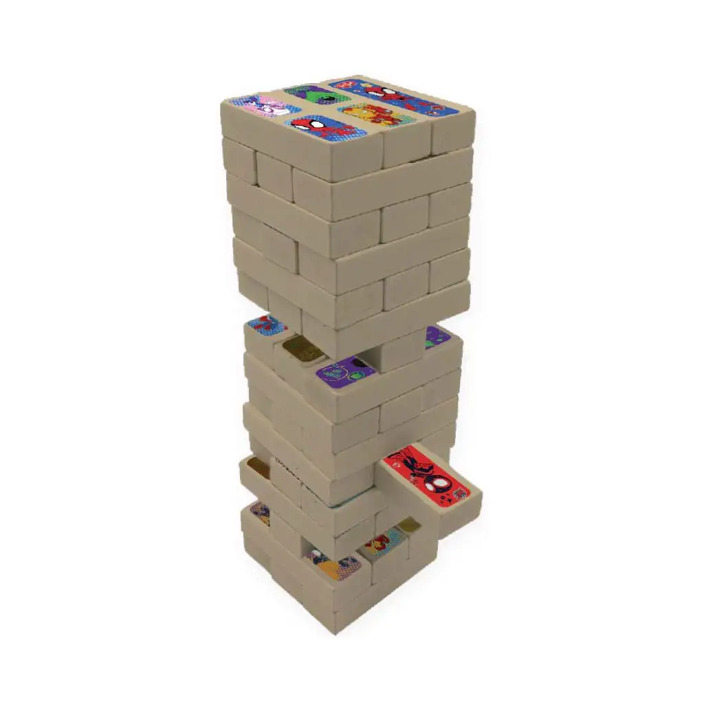 Marvelov Spidey 3-v-1 družabna igra je sanje vsakega malega superjunaka! V eni škatli najdeš tri vznemirljive igre, ki ne le zabavajo, ampak tudi razvijajo otrokovo logiko, spomin in ročne spretnosti. Set vsebuje ravnotežni stolp (Jenga), domine in spominsko igro – vse okrašeno z liki Spideyja in njegovih prijateljev, kot so Ghost-Spider, Miles Morales ali Iron Man. Otroci znova in znova z veseljem posežejo po barvitih lesenih elementih ter se skozi igro učijo.