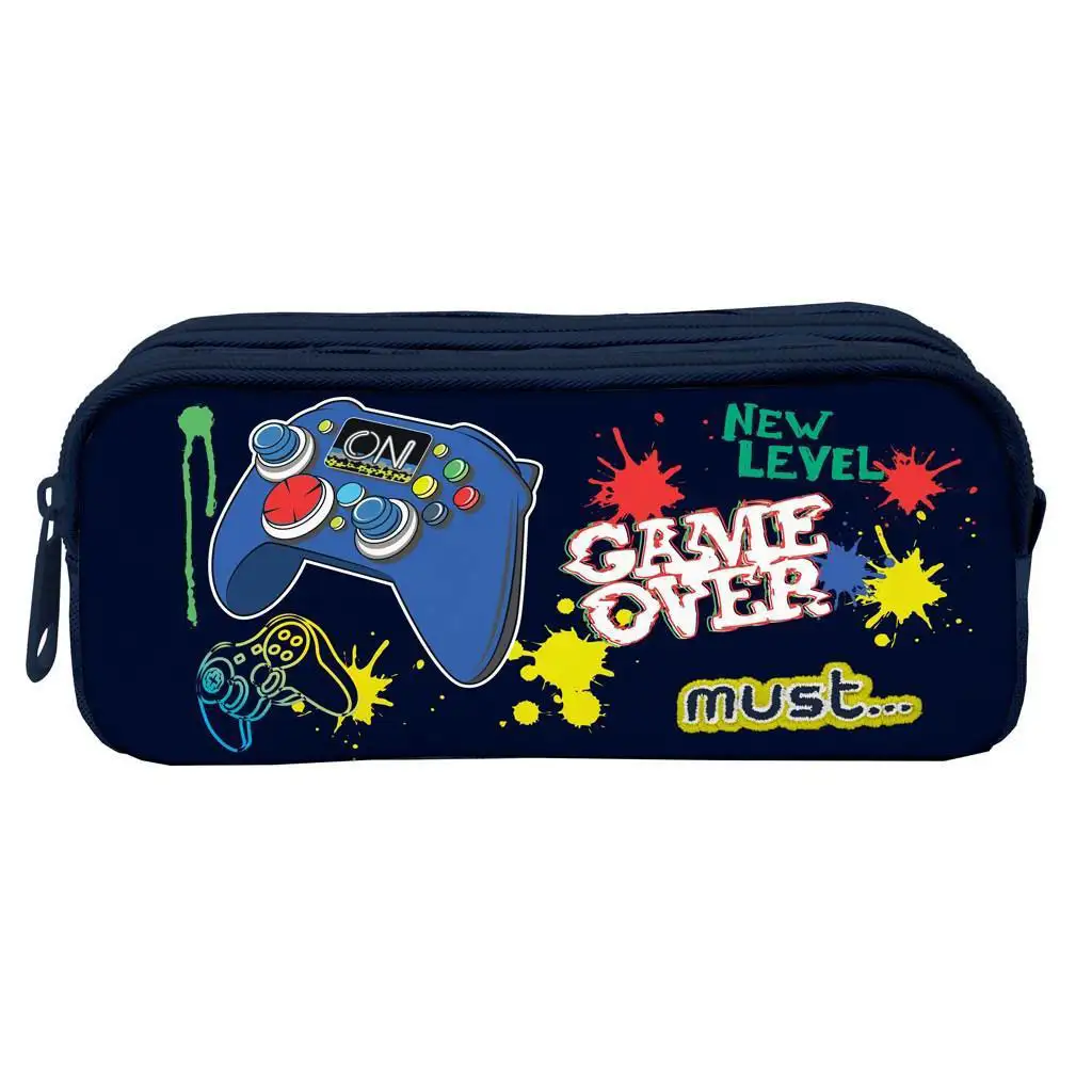 Game Over, valjasta dvoprekatna peresnica, je popolna izbira za vse male gamerje, ki imajo radi kul slog ne le pred konzolo, temveč tudi v šoli! Temno modro osnovo krasijo živahne barvne packe in grafike igralnih krmilnikov, zato je njen videz zares drzen. Napisi »GAME OVER« in »NEW LEVEL« namigujejo na to, da je lahko tudi učenje razburljiva misija!