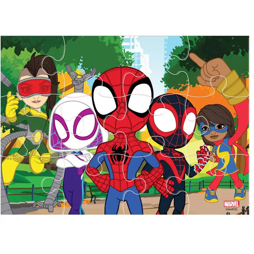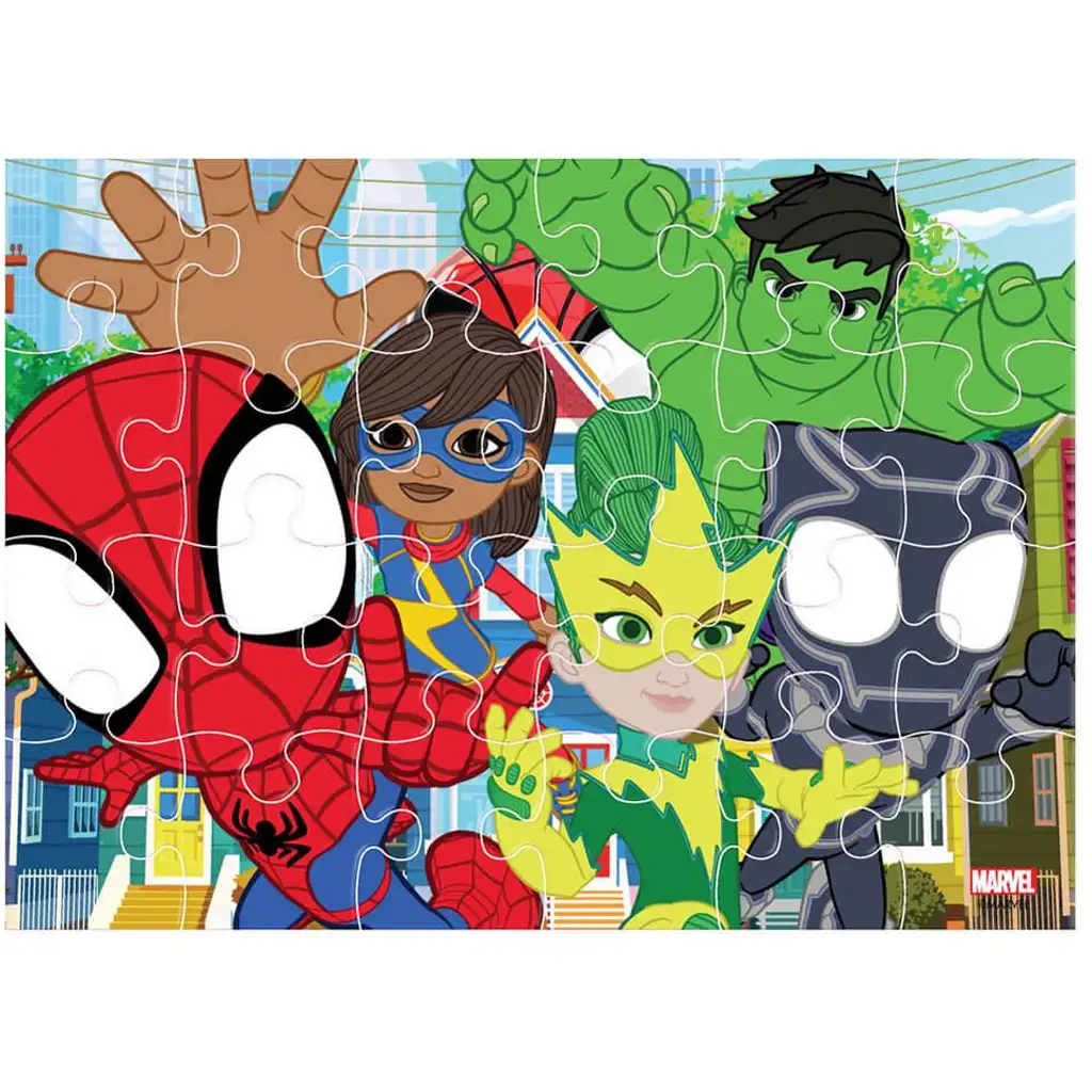 Ta komplet je idealen za otroke, stare 3 leta ali več, ki obožujejo pisane, vesele ilustracije, superjunaške dogodivščine in radi sestavljajo slike s svojimi najljubšimi liki. Sestavljanka izvrstno razvija koncentracijo, fino motoriko, koordinacijo oko-roka, poleg tega pa pomaga učiti potrpežljivosti in pozornosti na podrobnosti. Na slikah so predstavljeni najbolj znani Marvel Junior liki: Spidey, Ghost-Spider, Miles, Ms. Marvel, Hulk, Black Panther in še mnogi drugi – tako vsak sestavljen prizor prikliče nov, razburljiv Marvel trenutek.