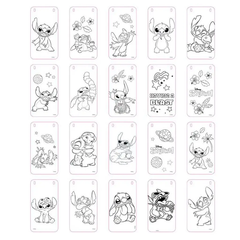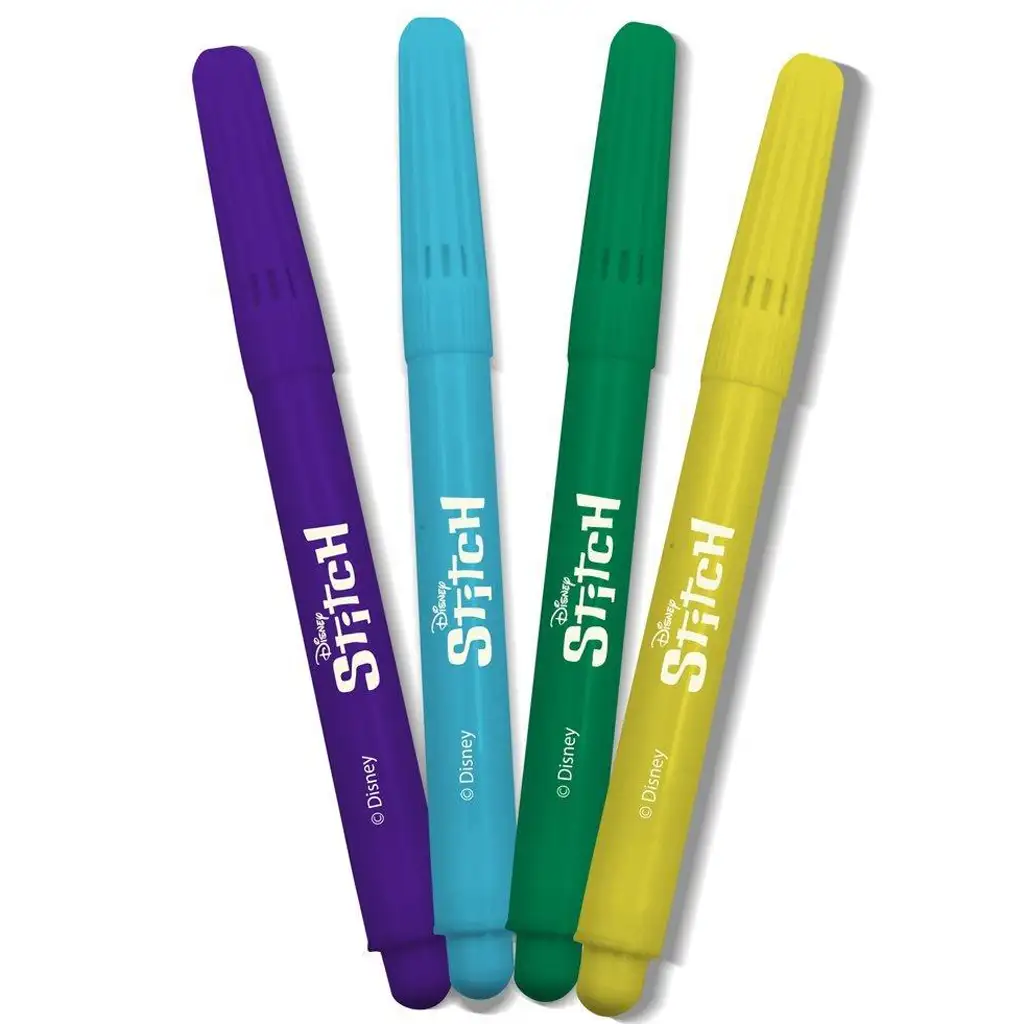 Set vsebuje 20 barvnih listov, na katerih zaživijo najboljši trenutki Stitchevega sveta – pleše, počiva, norčuje se in na nekaterih slikah se pojavi tudi Angel. Mali ustvarjalci lahko liste okrasijo s štirimi živahnimi flomastri (vijolična, svetlo modra, zelena, rumena), pri tem pa razvijajo ročne spretnosti, občutek za barve in ustvarjalno razmišljanje.