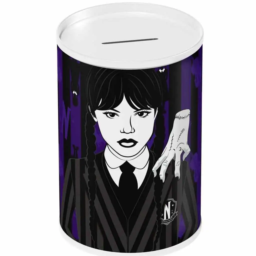 Spoznaj grozljivo vznemirljiv svet varčevanja s kovinsko hranilnico v obliki valja Luna Wednesday! Ta temna in elegantna hranilnica je idealna izbira za vse oboževalce Wednesday Addams, ki se želijo naučiti osnov varčevanja. Temačen, a očarljiv videz Wednesday zagotovo pritegne pozornost otrok in jih spodbuja k zbiranju denarja.