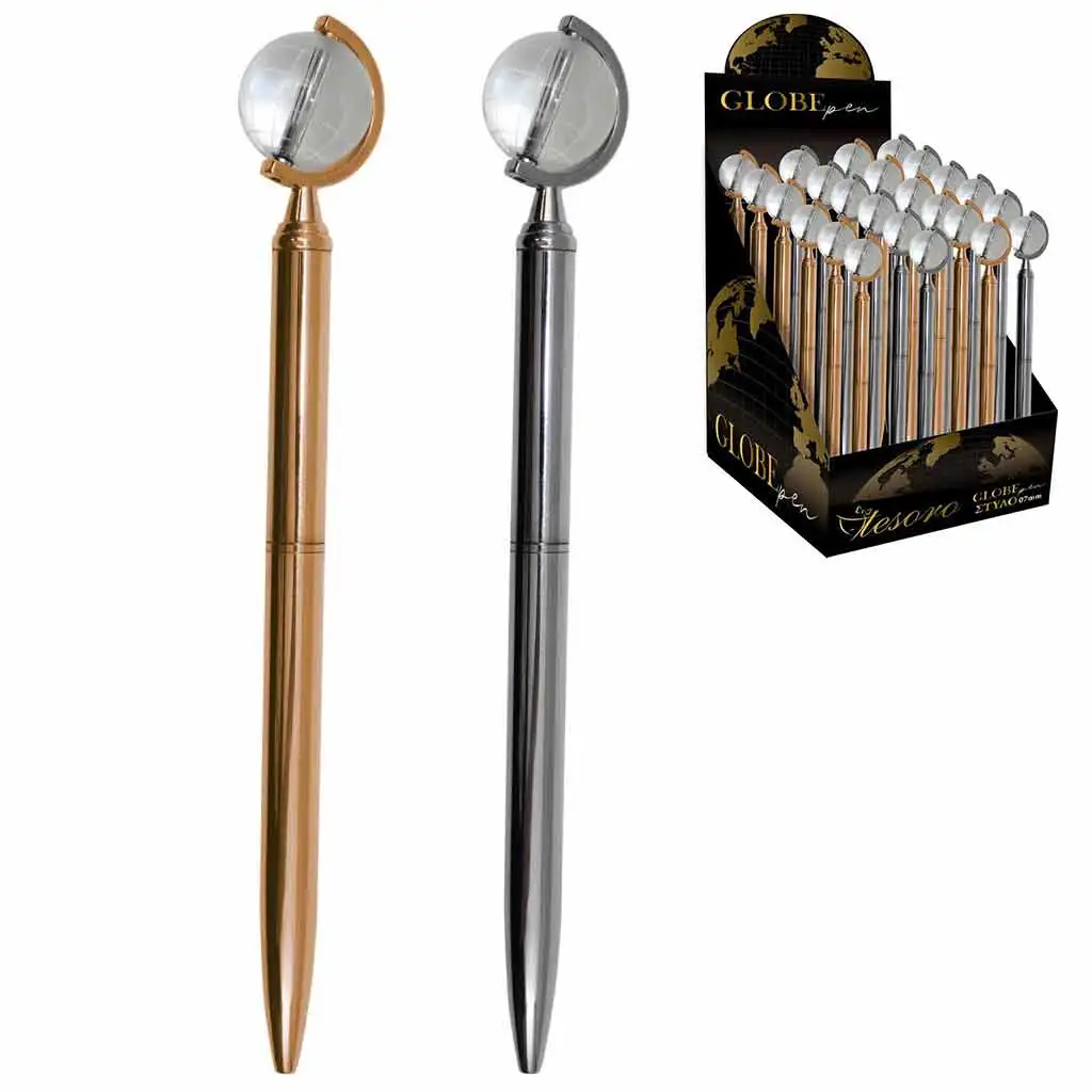 Spoznajte Luna Tesoro vrtljivi svetovni globus končni modri kemični svinčnik, ki je lahko popolna izbira za vse ljubitelje pisal, ki želijo svoji zbirki pisal dodati nekaj edinstvenosti! Svinčnik je na voljo v dveh različicah: elegantni zlati in sodobni srebrni barvi, tako da lahko vsak najde nekaj za svoj stil.
