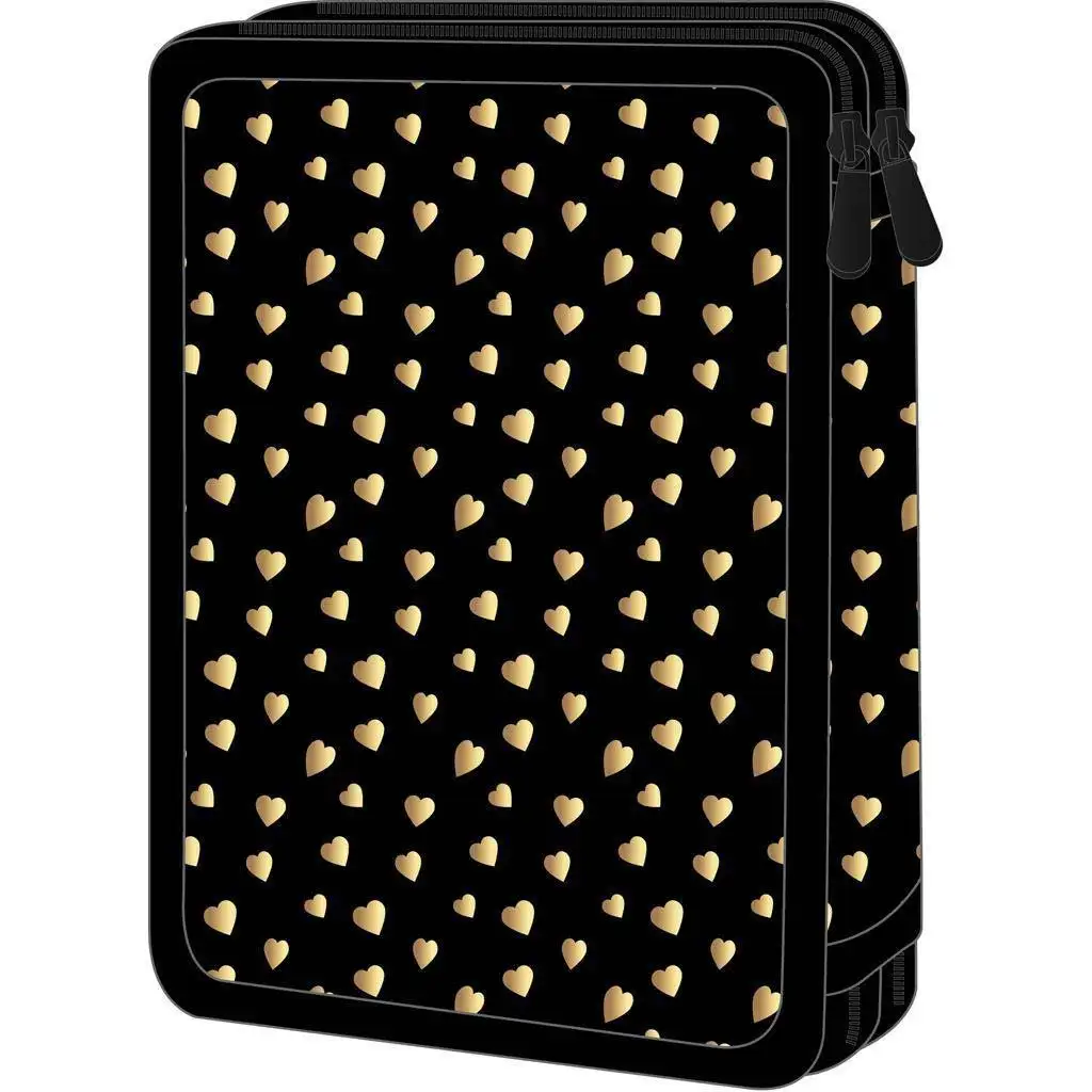 Eleganca in praktičnost se srečata v peresnici Luna: Must z 2 predali, različica Butterfly Hearts, ki s svojim stilskim videzom in popolno opremljenostjo predstavlja popolno izbiro za vsakega šolarja, ki sledi modnim smernicam. Bleščeča zlata srca na črni podlagi ustvarjajo moderen, čist dizajn, tako da ta peresnica ni le praktičen šolski pripomoček, temveč tudi modni dodatek.
