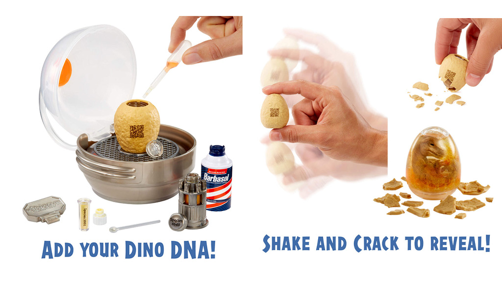 Zbiratelji dodajo dinozavrski DNK, nato pretresejo jajce, da razkrijejo bitje, ki se skriva v njem. Ta vznemirljiv postopek vedno prinaša presenečenje, saj nikoli ne tudijo, kakšen dinozaver se bo pojavil iz jajca. Igra nem le razvija ustvarjalnost in domišljijo, ampak otrokom prinaša tudi veselje zbiranja.