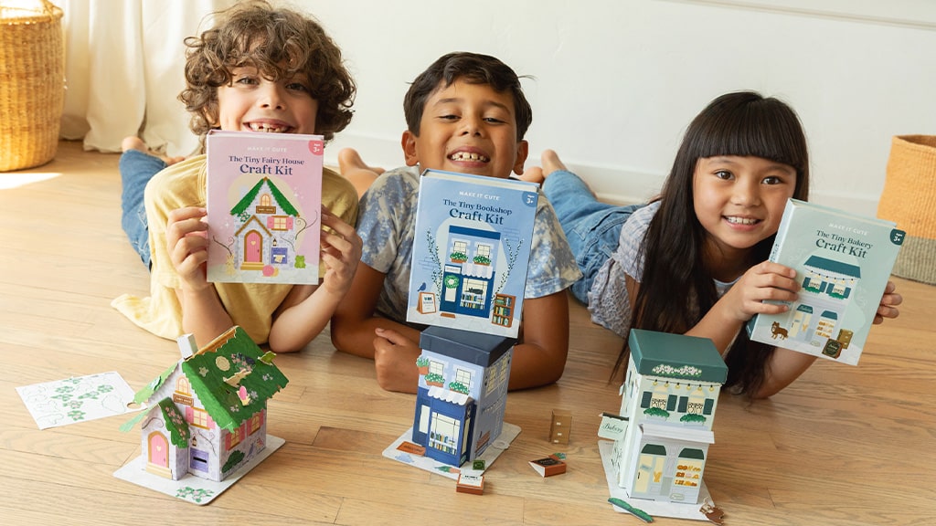 Otroci lahko zgradijo svoja mala mesta za svoje punčke, plišaste živali in še veliko več z najnovejšo minikolekcijo Make It Cute. Ti Tiny House Craft Kits ponujajo odlično priložnost za ustvarjanje in igro, saj so okolju prijazni DIY kompleti, s katerimi lahko otroci sami zgradijo in okrasijo miniaturne stavbe. Kompleti razvijajo ustvarjalnost, ročne spretnosti in domišljijo, hkrati pa zagotavljajo ure in ure zabave. Idealna izbira za vse, ki imajo radi ustvarjanje in igro vlog.
