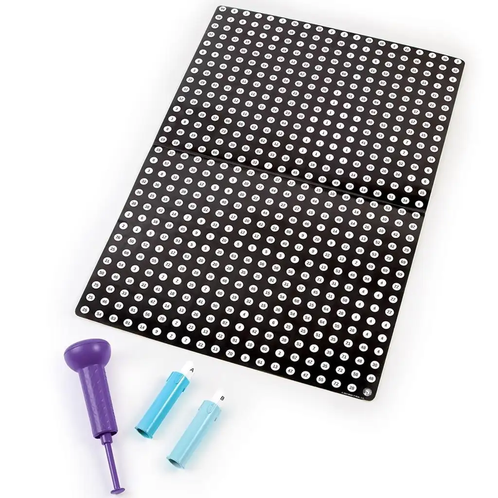 Tehnika nanašanja pik je izjemno prijetna in sproščujoča, saj je enostavna, a hkrati vizualno atraktivna – idealna za otroke, ki radi ustvarjajo in imajo raje natančno delo. V setu je vse, kar otroci potrebujejo za ustvarjanje: poster, žig in dve vrsti kartuš s črnilom, ki s sijočimi in bleščečimi barvami zapolnijo vnaprej označene pikice.