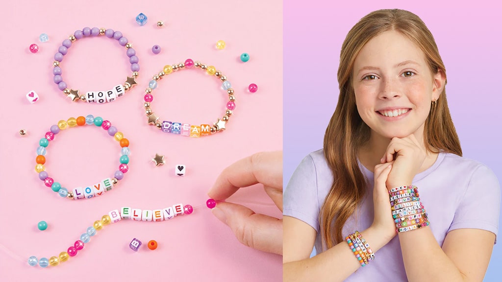 Ta komplet za izdelavo zapestnic vsebuje več kot 1000 perlic, tako da lahko mladi prilagodijo svoje zapestnice s katero koli besedo ali navdihujočim izrekom, ki si ga želijo! S številnimi elastičnimi vrvicami in tremi različnimi stili črkovnih perlic lahko ustvariš nešteto dizajnov in izdelaš edinstvene zapestnice zase ali za svoje prijatelje.