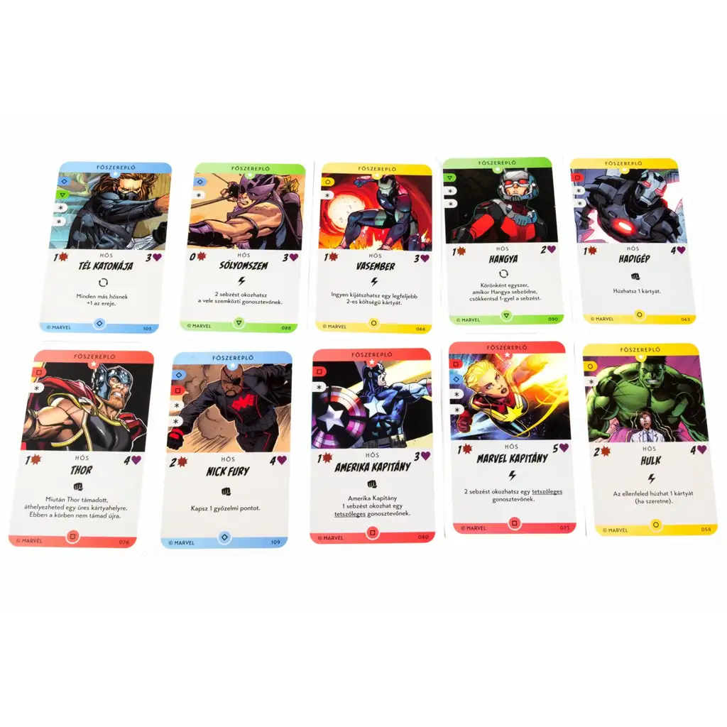 Vsak krog lahko novačiš junake ali zlobneže, igraž karte in izvajaš akcije. Tvoj komplet kart z junaki ali zlobneži ima posebne sposobnosti in vsaka karta odpre nove taktične možnosti. Med bojem lahko pridobiš tudi relikvije, kot so Kozmična kocka, Oko Čarovnika ali Agamottovo oko, ki dramatično vplivajo na potek igre – ena pravočasno odigrana karta lahko obrne celoten dvoboj.