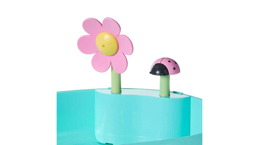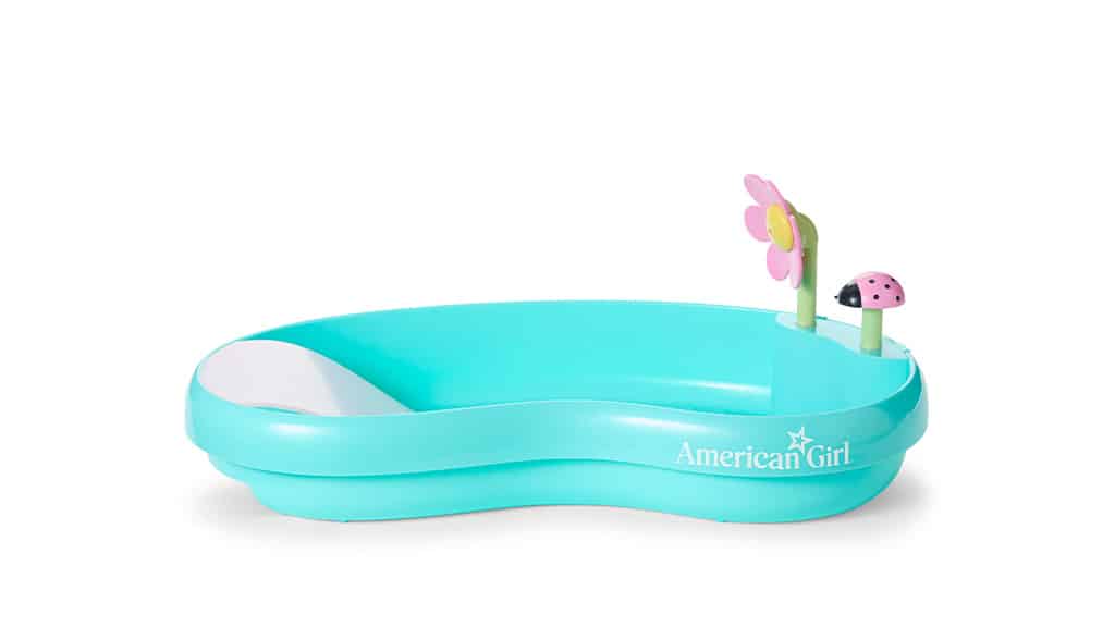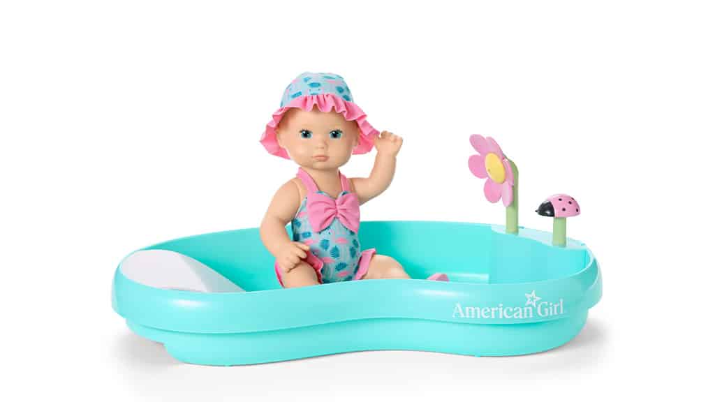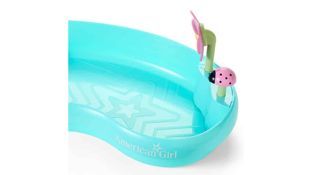 Igralni bazen za dojenčke, ki se popolnoma prilega lutkam American Girl Bitty Baby. Družine lahko napolnijo bazen z vodo, pritisnejo na pikapolonico, da iz marjetice prši voda, in spustijo lutke po vgrajenem toboganu. Lutke Bitty Baby so na voljo posebej. Ta igralni bazen je odlična priložnost za otroke, da se kreativno in veselo igrajo, medtem ko razvijajo svojo domišljijo in fine motorične spretnosti. Barvit, vesel dizajn bazena zagotovo pritegne pozornost najmlajših in nudi ure in ure zabave.