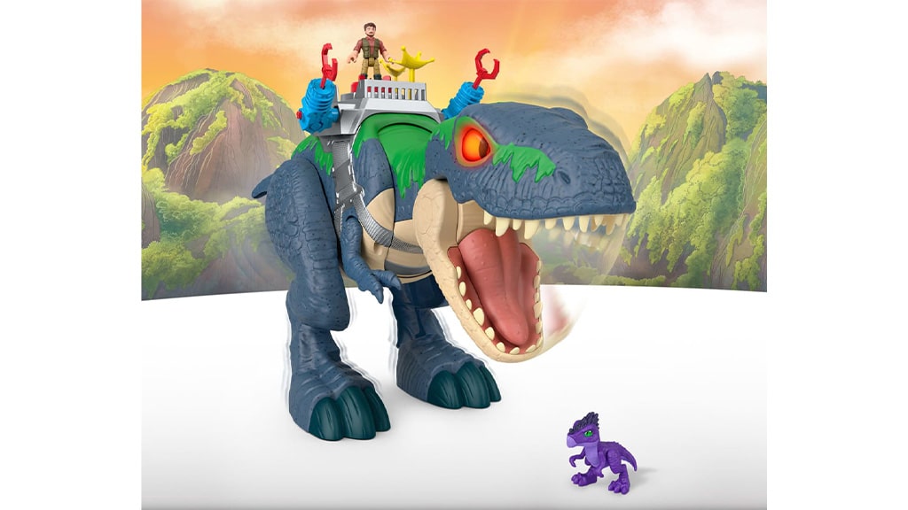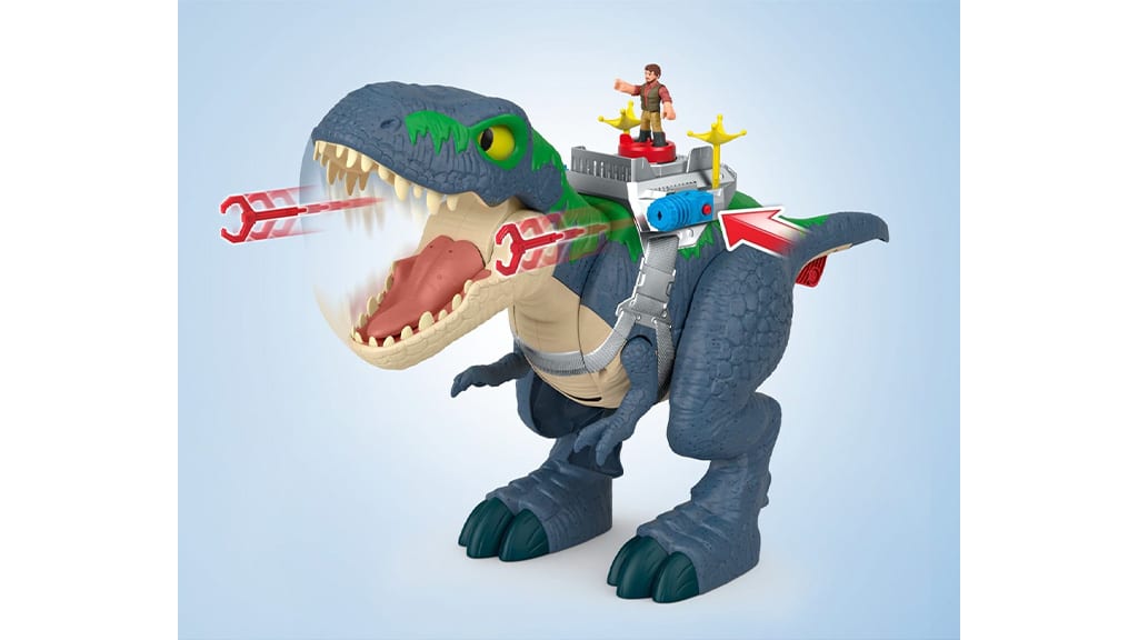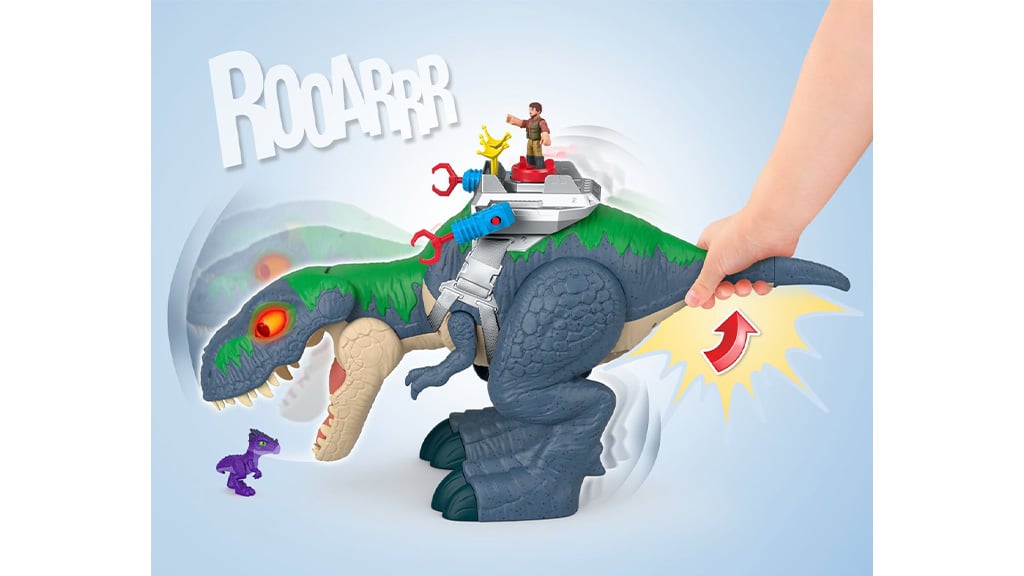 Otroci lahko s to ogromno figuro T. rexa ustvarjajo dinozavrske pustolovščine. Ta igrača omogoča, da otroška domišljija prosto leti, medtem ko si izmišljajo in igrajo razburljive zgodbe. Figura, ki jo je izdelal Mattel, s svojo podrobno izdelavo in impresivno velikostjo ponuja pravo doživetje za vse ljubitelje dinozavrov.T. rex ima dva načina igre: lahko se uporablja v načinu prijaznosti in v načinu napada. Ti načini omogočajo otrokom, da doživijo različne pustolovščine, ne glede na to, ali želijo igrati prijazne ali vznemirljive, akcijske prizore. V načinu prijaznosti se T. rex obnaša mirno, medtem ko v načinu napada nastopa kot strašen plenilec, kar igro naredi še bolj zabavno in raznoliko.