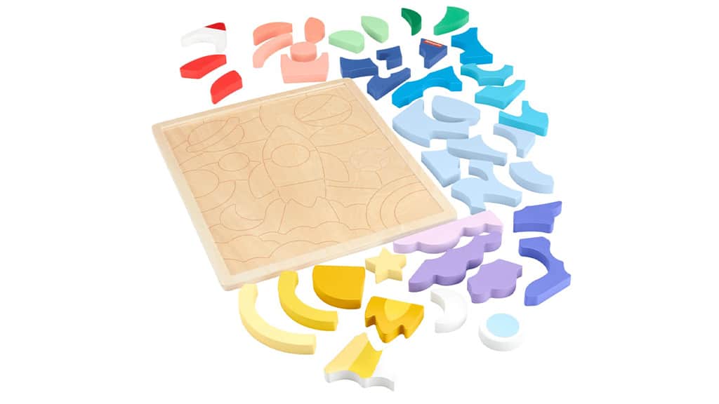 Večina sestavljank je majhnih in podobnih oblik, kar lahko predstavlja izziv za majhne otroke. Ta vesoljsko tematski komplet odpravlja zmedo pri reševanju sestavljank z edinstvenimi oblikovanimi kosi, ki so dovolj veliki za majhne roke. Za razliko od klasičnih sestavljank ta komplet omogoča tudi prosto igro, kjer lahko otroci zlagajo bloke drug na drugega ali razvrščajo kose po barvi. Starši lahko uživajo tudi v izobraževalnih prednostih, ki jih otroci pridobijo iz te sestavljanke, vključno z razvojem finih motoričnih spretnosti, reševanjem problemov in koordinacijo roka-oko.
