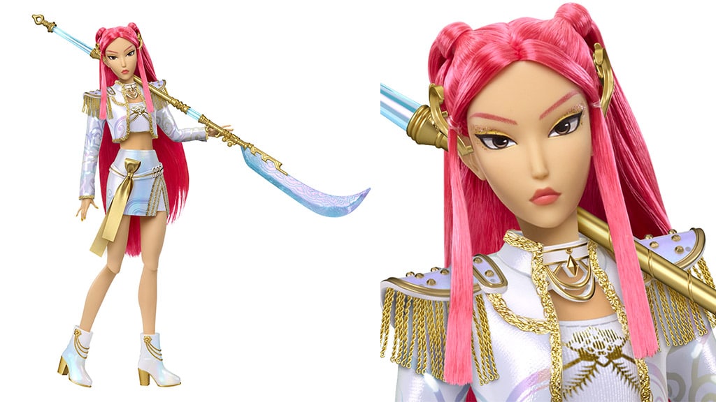 Ta komplet treh lutk prikazuje like Rumi, Mira in Zoey iz sveta KPop Demonvadászok. Vsaka je osupljiva, popolnoma gibljiva idol lutka, oblečena v ikonično opravo iz finala filma, v roki drži svoje značilno orožje in izžareva pravo zvezdniško moč.