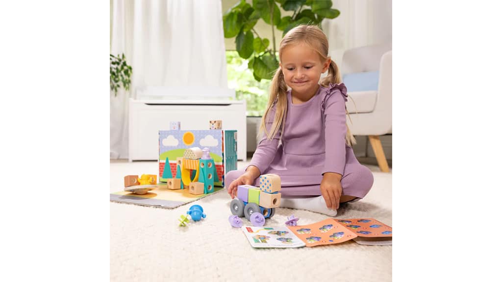 Melissa & Doug Blockables so na voljo v več različnih, zabavnih kompletih. Ti kompleti ponujajo ustvarjalno igralno izkušnjo in pomagajo pri razvoju otrok na področju fine motorike, reševanja problemov in domišljije. Zaradi raznolikih elementov lahko vsak otrok najde zanj najbolj zanimivo sestavo, zato igra nikoli ne postane dolgočasna. Kakovostni materiali in skrbna izdelava zagotavljajo tudi trajnost in varnost.Obožujemo ta komplet igrač, ker ustvarja trdne temelje za kognitivno igro, saj razvija fine motorične spretnosti in spodbuja ustvarjalnost. Klasične lesene gradnike združuje z inovativno rešitvijo, ki otrokom omogoča, da elemente enostavno spojijo, medtem ko lahko odkrivajo različne teksture. Otroci lahko gradijo po korak za korakom vodniku z idejami ali pa svobodno izpustijo svojo domišljijo in ustvarjajo po lastnih zamislih. Mehke barve in igrive oblike še dodatno povečajo čar tega kompleta. Vsak set je pakiran v ponovno uporabni škatli z ročajem, zato je shranjevanje in prenašanje izjemno enostavno. Ta komplet ni le zabaven, ampak tudi spodbuja razvoj otrok, medtem ko jih ure dolgo zaposluje.