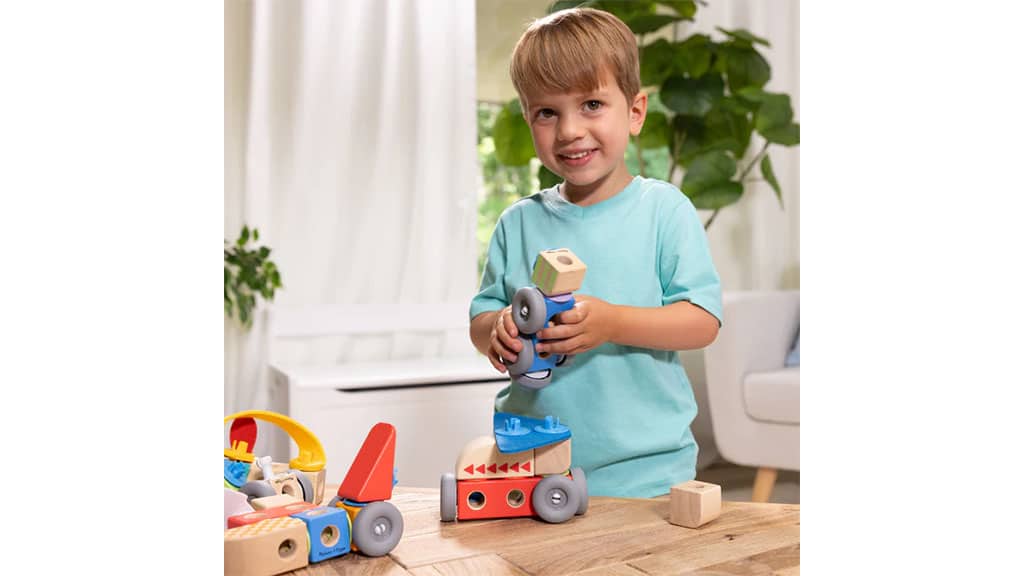 Melissa & Doug Blockables je komplet lesenih gradbenih igrač, ki je sestavljen iz unikatno oblikovanih lesenih elementov. Ti elementi se zlahka sestavijo s preprostimi plastičnimi priključki. Gradbene elemente je mogoče povezati tudi s filcem in plastičnimi figuricami, tako da lahko otroci prosto kombinirajo in spreminjajo različne dele. Kolekcija Blockables vsebuje več različnih kompletov, kot so komplet za igro Kmetija, komplet za igro Vozila in komplet za igro Mesto. Ti kompleti razvijajo ustvarjalnost, fino motoriko in sposobnost reševanja problemov, medtem ko se otroci zabavajo, učijo in gradijo.