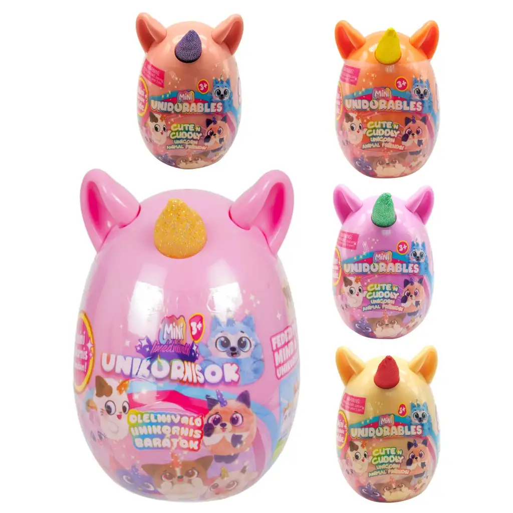Predstavljamo fantastično igro, kjer lahko vsak otrok odkrije čarobni svet plišastih enorogov! Ti super mehki, objemljivi mali enorogi očarajo vsakogar s svojim ljubkim pogledom in bleščečim rogom. Barvite plišaste figure prispejo v presenečenjskem jajcu, tako da bodo malčki doživeli dvojno presenečenje: odpreti jajce in odkriti, kateri enorog se skriva notri. Priložene nalepke omogočajo dodatno kreativno igro.