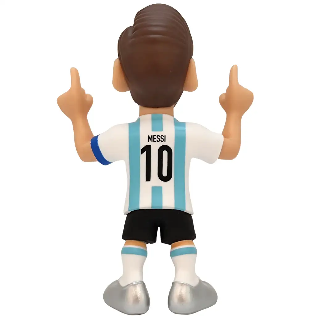 Če se tvoj otrok zgleduje po enem največjih nogometnih zvezdnikov sveta, Lionelu Messiju, bo ta 12 cm visoka Minix figurica popolna izbira zanj. Messi je prikazan v klasičnem modro-belem dresu argentinske reprezentance, s številko 10, kapitanskim trakom in prsti, ki kažejo proti nebu, v njegovi ikonični proslavljajoči pozi – prav tako, kot si ga lahko zapomnimo po zmagovalnih golih.