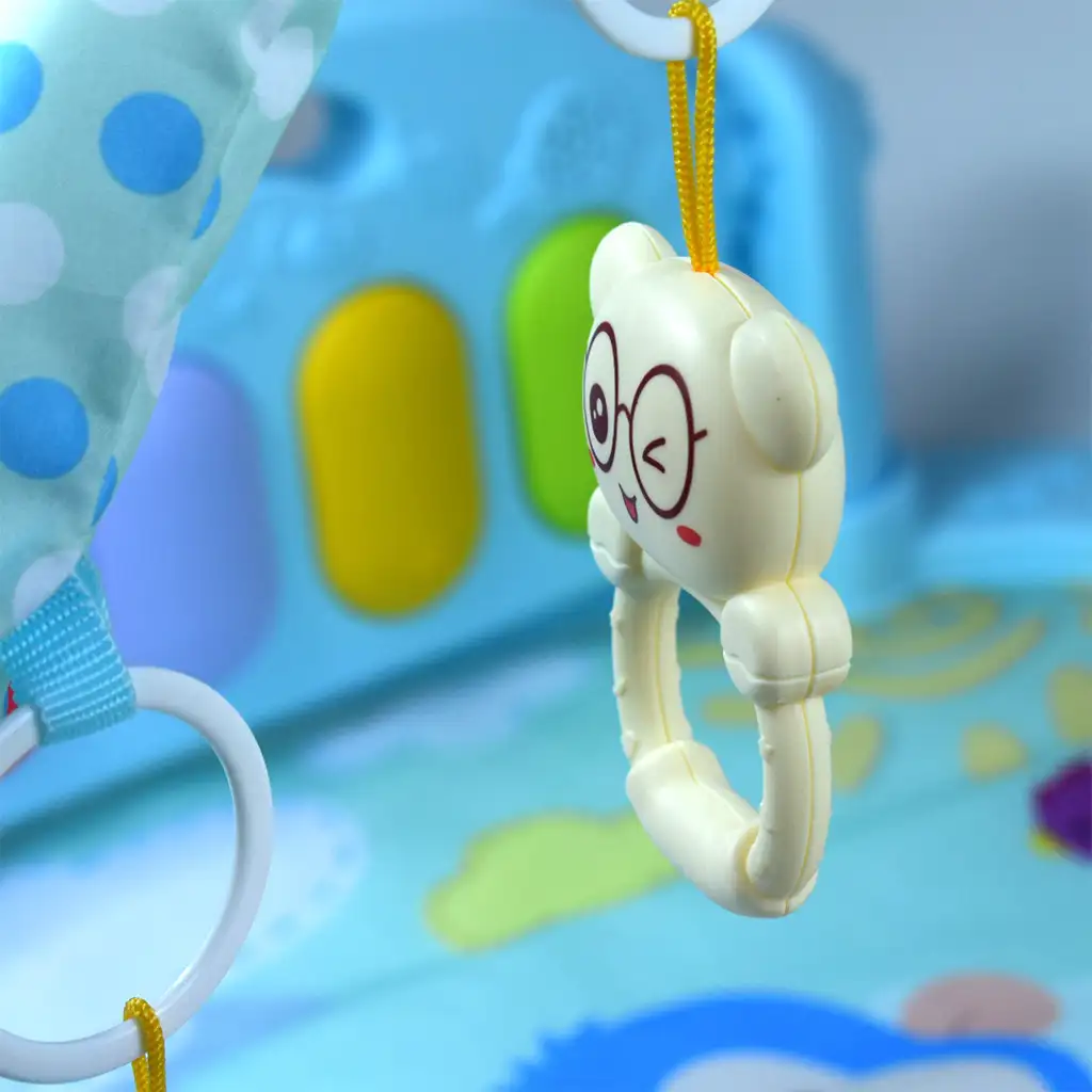 Posebnost igralne preproge so dodatki, ki oddajajo zvočne učinke in glasbo, kar je velik uspeh med dojenčki. Poleg tega lahko z ogledalom za dojenčke vaš malček z veseljem odkriva svoj obraz, medtem ko se z vgrajenim klavirjem seznani z različnimi melodijami.
