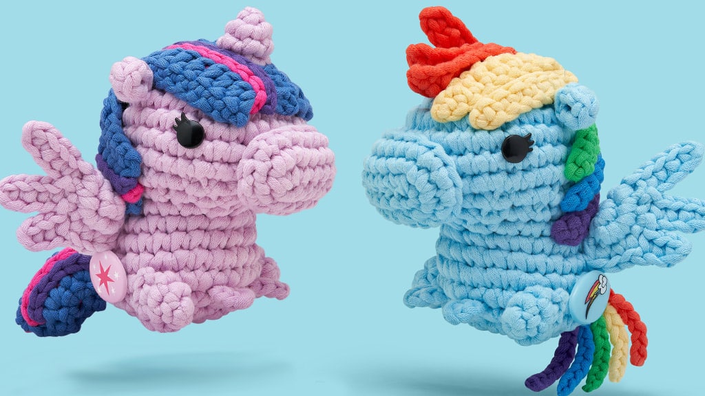 Vsak komplet za ročna dela vsebuje vse, kar potrebuješ za izdelavo kultnih likov, vključno z edinstveno kvačko, prejo, gumbi za oči in vsak poni ima svojo, posebno cutie mark. Če se s kvačkanjem šele spoznavaš, brez skrbi! Zaradi enostavno sledljivih vzorcev in izobraževalnih videoposnetkov je izdelava teh čudovitih figuric čarobno preprosta za vse starosti.
