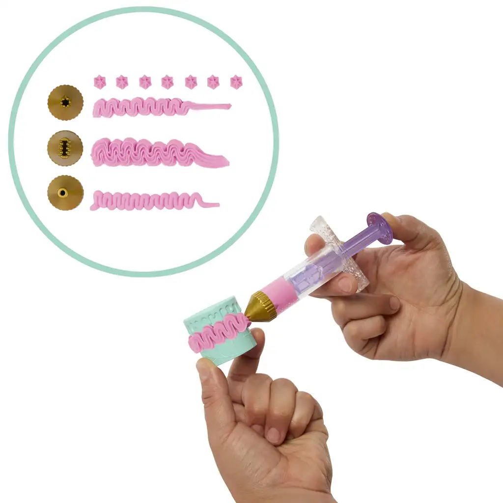 Z Eerie Icing maso za oblikovanje bo igra še bolj pristna: otroci lahko s tremi različnimi nastavki kot pravi slaščičarji „iztisnejo” kremo na torte ali z oblikovalnimi žigi ustvarijo posebne vzorce na vrhu. Raznoliki okraski v pošastnem stilu – vrtnice, netopirji, pentlje in drugi dodatki – poskrbijo, da bo vsaka kreacija edinstvena.