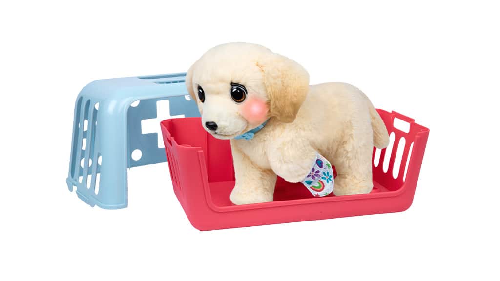 Z igračo Moose Toys Little Live Pets Ouchies Cooper se lahko otroci spremenijo v prave male veterinarje, akik so pripravljeni skrbeti in razvajati svojega ljubljenčka! Cooper je mehak, prikupen mladiček pasme zlati prinašalec, ki zna proizvesti več kot 50 različnih zvokov in reakcij. Potrebuje pomoč otrok, starih 5 let ali več, da pozdravijo njegovo tačko in da se bolje počuti.Ta igralni komplet vsebuje vse, kar potrebujete za nego Cooperja: opornico, prenosno kletko za male živali in obliže, ki se aktivirajo z vodo in spremenijo opornico v mavec. Cooper veselo hodi, ko ga otroci pobožajo, vendar pozor! Če otroci med sprehodom položijo roko pred Cooperjev nos, kužek boleče zacvili, ker ima poškodovano tačko.