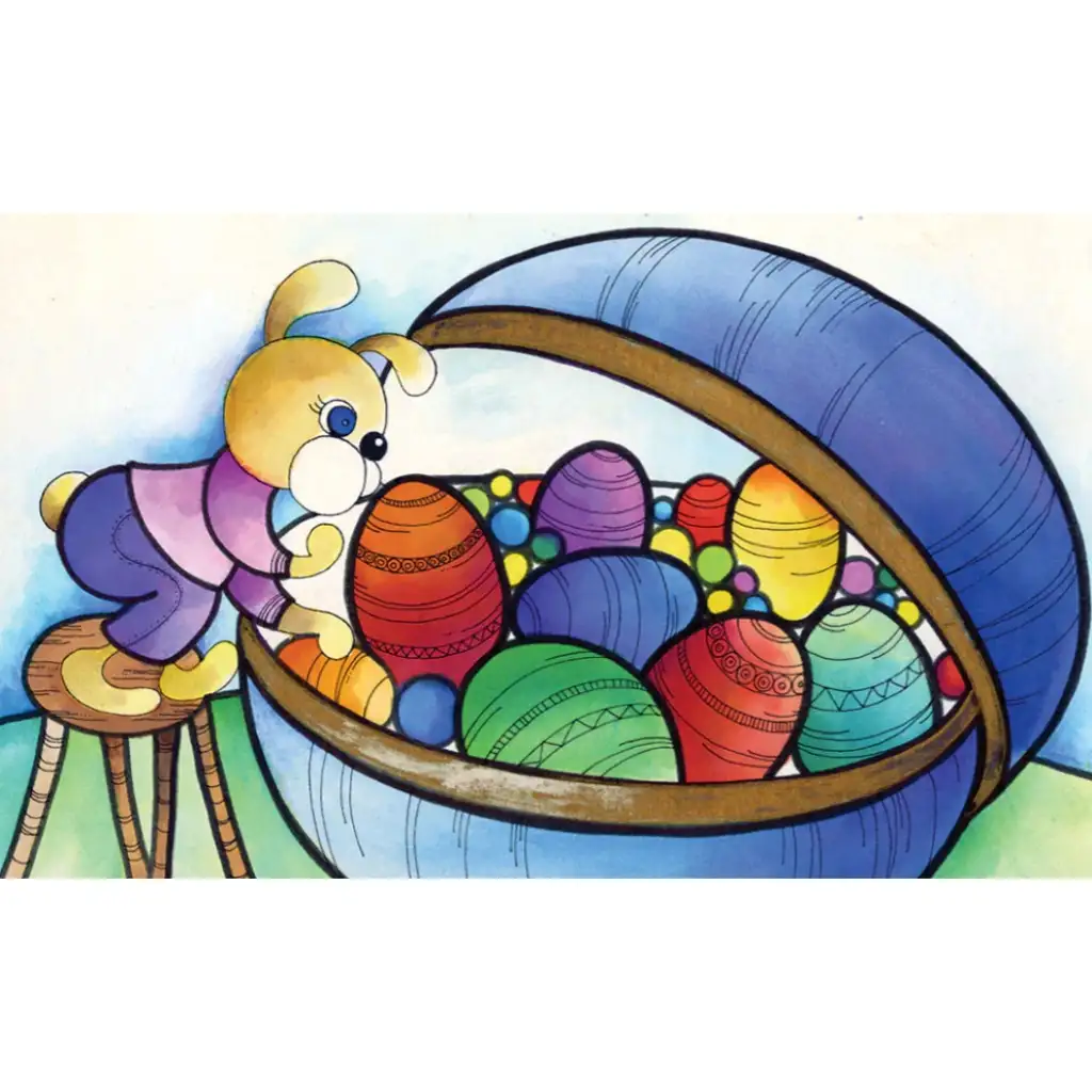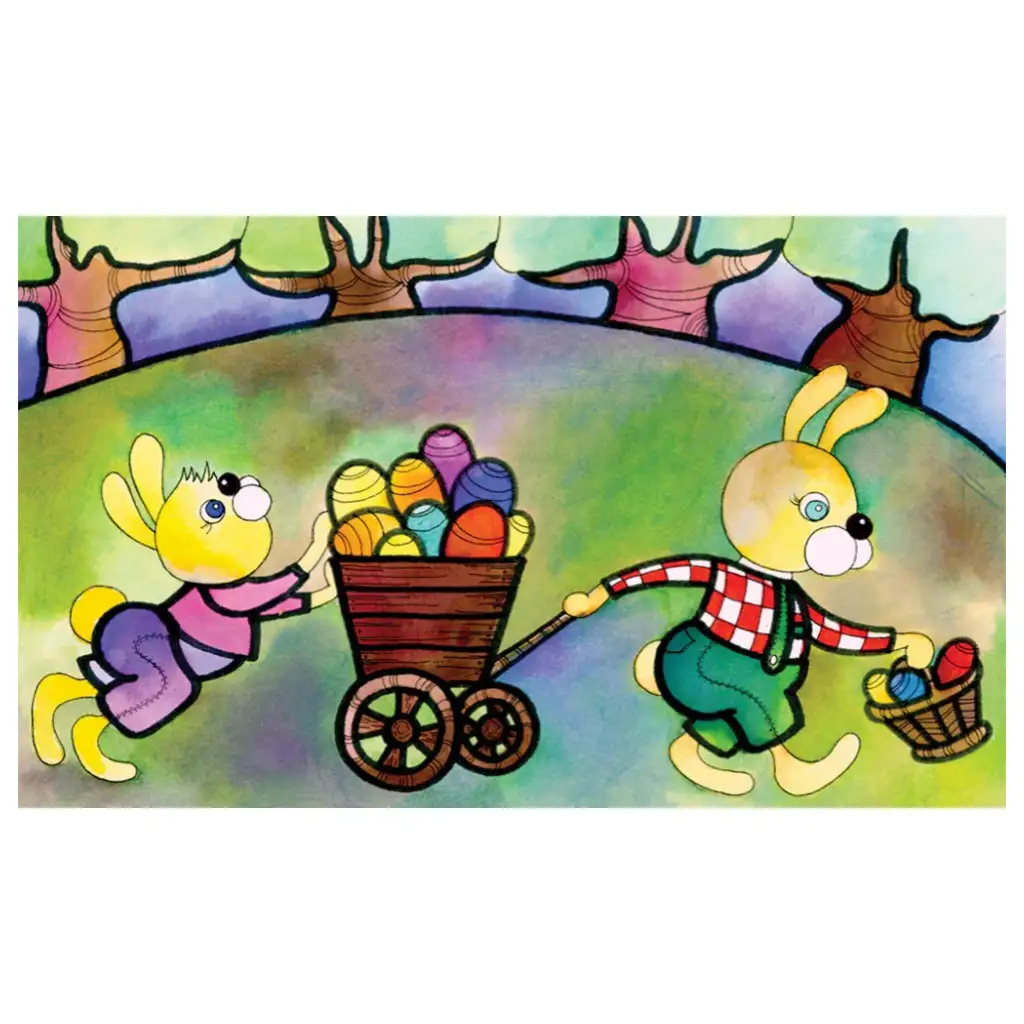 Ta 27-diapozitivni film oživlja intimno zgodbo Ferenca Móra, ki govori o ljubeči družini zajčkov, ki za veliko noč barvajo jajca. Zgodba se osredotoča na to, kako se zajčki pripravljajo na praznik in kako obdarujejo gozdarjeve otroke s pisano okrašenimi jajci. Skozi posebne slike diapozitivov lahko otroci sledijo procesu barvanja, družinski povezanosti in veselju obdarovanja. Vsaka podrobnost slik odraža ljubezen in praznično vzdušje. Toplina, ki izhaja iz zgodbe, se popolnoma ujema z duhom velike noči in pomaga otrokom razumeti pravi pomen praznika. Ta diapozitivni film je odlična izbira za domačo uporabo ali za vrtce in šole, da se otroci na igriv način seznanijo z velikonočnimi tradicijami in vrednotami.