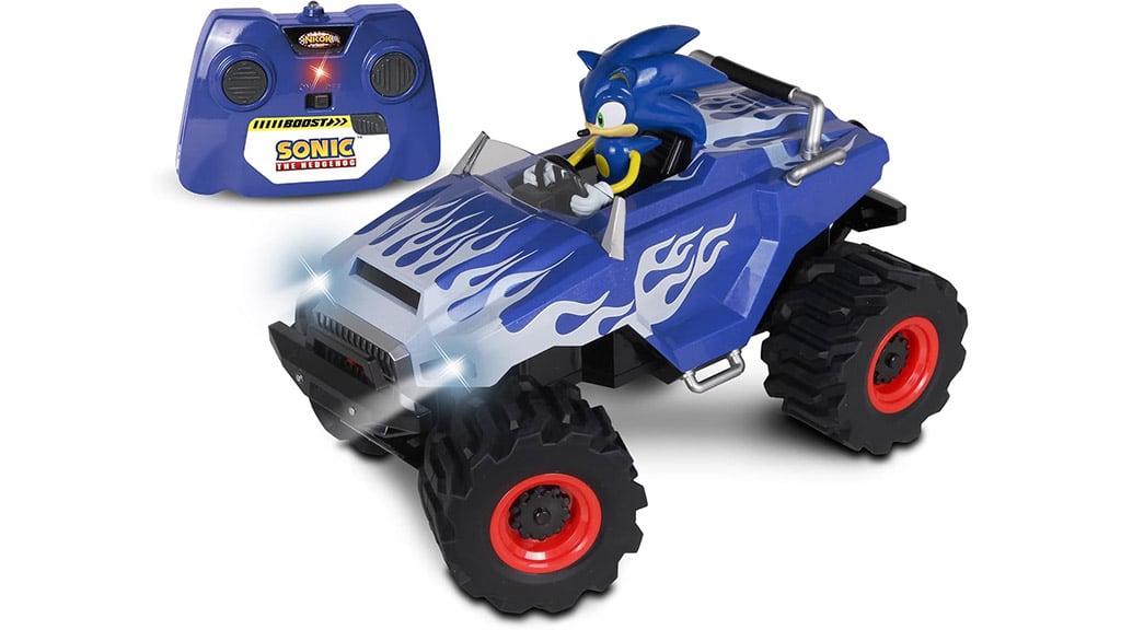 Nihče ne pozna hitrosti tako kot Sonic, ježek! Ta daljinsko upravljani avto dvigne zabavo na novo raven s svojimi delujočimi lučmi, terenskimi gumami in impresivnim plamenskim poslikavo. Ne glede na to, ali divjaš z njim po vrtu ali se vrtiš v krogu v dnevni sobi, ta Monster Truck se premika hitro, gladko in brez motenj. Otroci lahko poleg tega zberejo tudi figurico Knucklesa, da bo pustolovščina še popolnejša! Ta igrača je popolna izbira za vse Sonicove oboževalce, ki imajo radi hitrost in razburljive dirke.