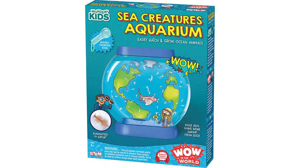 Sestavite svoj akvarij, da bodo vaša morska bitja našla dom! Pripravite "slano vodo" in opazujte, kako se iz priloženih "jajčec" izležejo majhni "slaniki", plavajo, se hranijo s priloženo "hrano" in počasi rastejo. Zabaven, osemstranski, barvni vodnik podrobno razloži, kako sestaviti akvarij, kako izvaliti in skrbeti za majhna bitja. Sestavljanje akvarija ni le vznemirljivo, ampak tudi poučno, saj spoznate življenjski cikel morskih bitij in osnove njihove nege. Ta dejavnost ponuja odlično priložnost, da se približate naravi in opazujete čudeže vodnega sveta.