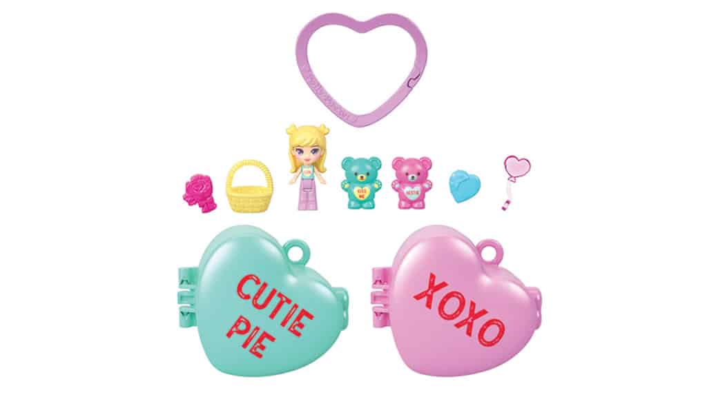 Bodi moj! Polly Pocket in njeni prijazni prijatelji, medvedki Sweethearts, se odpravljajo na sladko pustolovščino s tem igralnim kompletom. Komplet vsebuje dva kompakta, navdihnjena s Sweethearts, ki ob odprtju razkrivata majhne, podrobno izdelane svetove. Otroci lahko srca pritrdijo tudi na obesek za ključe, tako da jih lahko vzamejo s seboj kamorkoli in uživajo v igri tudi na poti.