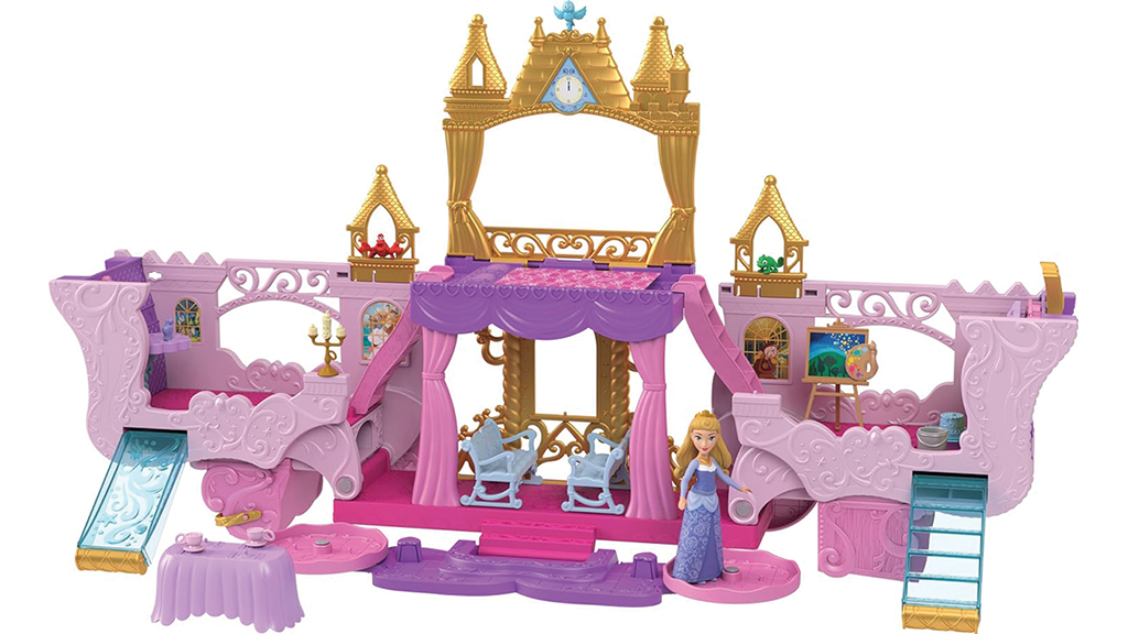 Pretvorite otroški voziček v tristanjski grad. Set vsebuje lutko Auroro, štiri prijatelje, pohištvo in še veliko več, ter omogoča prostor tudi za druge male lutke Disney princesk. Ta čarobni grad omogoča otrokom, da se potopijo v svet pravljic in ustvarjajo lastne zgodbe. Različne ravni ponujajo različne sobe in prostore, kjer lahko otroška ustvarjalnost poleti. Grad je enostavno preoblikovati, tako da vedno čakajo nove dogodivščine na male princese in njihove prijatelje.