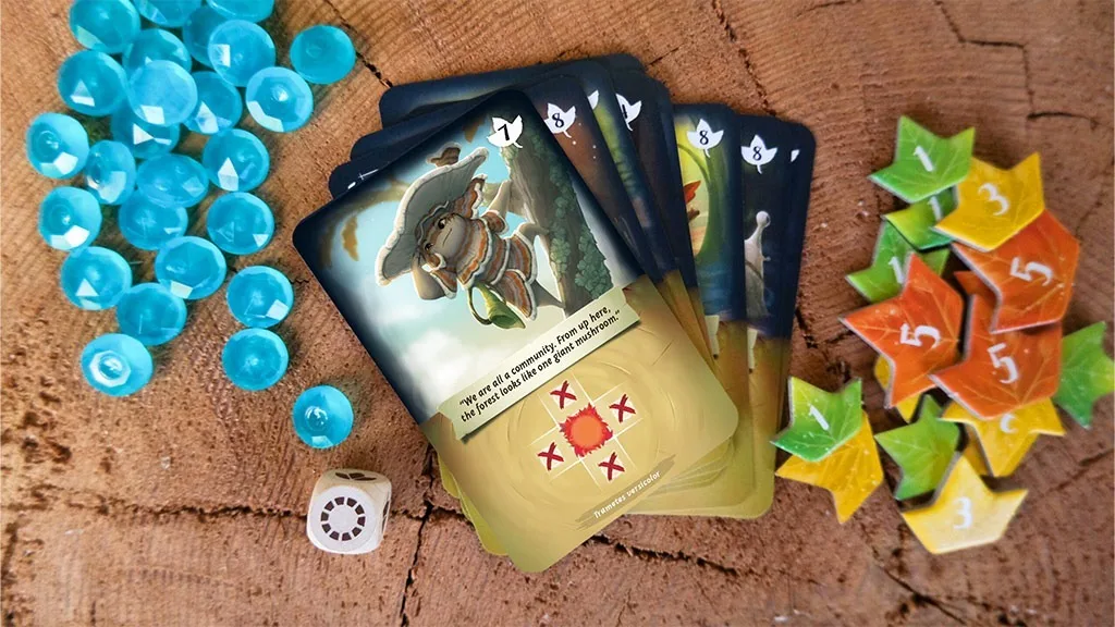 Mycelia je igra sestavljanja kupčkov kart, ki je popolnoma v temi gob in je posebej zasnovana za najstnike. Da bi otroci zmagali v igri, morajo zbirati edinstvene gobe in liste, da pomagajo odstraniti kapljice rose s plošče. Ko odstranijo kapljice rose s plošče, igralci dodajo te kapljice na Oltar Življenja. Umetniške ilustracije v Mycelia so resnično čudovite, prikazujejo pastelne oblake, kristalno čisto vodo in gobaste like, ki so večji od življenja!