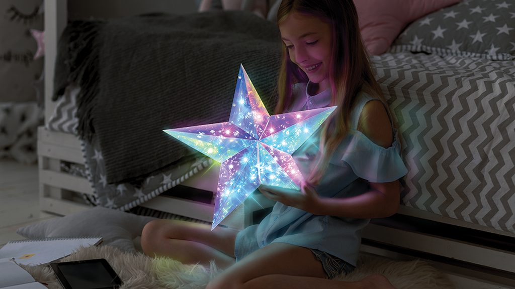 Reševanje ugank se sreča z »naredi sam« dekoracijo v tem kompletu, s katerim lahko otroci izdelajo prizemsko, zvezdasto oblikovano svetilko, ki jo je mogoče priključiti na USB in sveti. Ta dejavnost ne razvija le ustvarjalnosti in ročnih spretnosti, temveč je tudi zabavna in uporabna dekoracija za vsako sobo. Otroci lahko ponosno pokažejo svojo lastno, unikatno svetilko, medtem ko se igrivo učijo o elektriki in oblikovanju.
